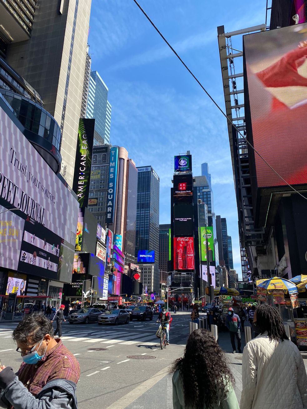 Jako první jsem samozřejmě musela vidět Times Square. Cítila jsem se jako v jádru samotného vesmíru. Obrazovky, vysoké budovy, stánky s jídlem a převlečení hrdinové. Měla jsem pocit, že tam můžu najít vše, na co si vzpomenu. Upřímně ani nedokážu slovy popsat, jaký pocit to byl. Chtěla jsem křičet radostí, skákat a v ten jeden moment jsem pociťovala všechny pozitivní emoce. Zdržela jsem se nějakou chvíli, navštívila obrovský m&m obchod a byl pomalu čas najít další místo.