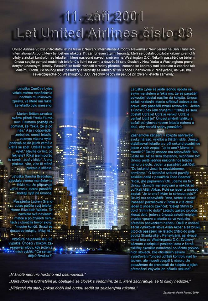 "11. září 2001. Den, který nemůže nechat dobré lidi sedět se založenýma rukama..." Patrik Pluhař, 11. září 2010