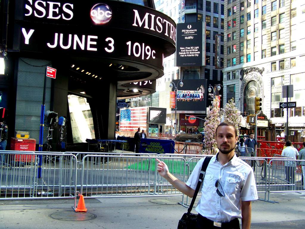 "Good Morning, America", aneb vzpomínka sice na brzká, ale zároveň nejúžasnější rána v New Yorku, živě se stanicí ABC. Good Morning, America je další z úžasných přímých přenosů ranních show, jejíž vysílání můžete na vlastní kůži zažít každé ráno na Times Square v samotném centru New Yorku. Nicméně si neodpustím, že tato ranní show u nás vyloženě chybí, kam se hrabe naše "Snídaně s Novou". Protože přesně takhle si představuji, že se dělá ranní show pro lidi, kteří míří do práce, do školy... To mi u nás docela chybí a ne se zavřít někde ve studiu bohužel tak, jak to je u našich "ranních show". Good Morning America "GMA" je americká ranní nesledovanější televizní show vůbec, která se vysílá denně mezi sedmou a devátou hodinou ranní ve všech časových pásmech USA