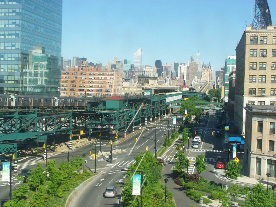 18th Street, Queens, New York a v pozadí most Robert F. Kennedy Bridge vedoucí do Bronxu
