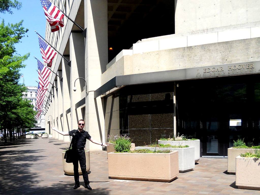 Budova hlavního ústředí FBI... Budova J. Edgara Hoovera je monstrum, umístěné na Pennsylvania Avenue mezi Devátou a Desátou ulicí severovýchodním Washingtonem. Někdo ji také říká pomník Hooverovy "vlády". Budovu, do které se FBI nastěhovala v roce 1974, tvoří zkosený čtyřstěn. Aby budova vyhověla místním omezením, má na straně Pennsylvania Avenue sedm podlaží, ale dozadu se zvedá na jedenáct. Groteskní převis vzadu budí z boku dojem, že se budova co nevidět zřítí na chodce.