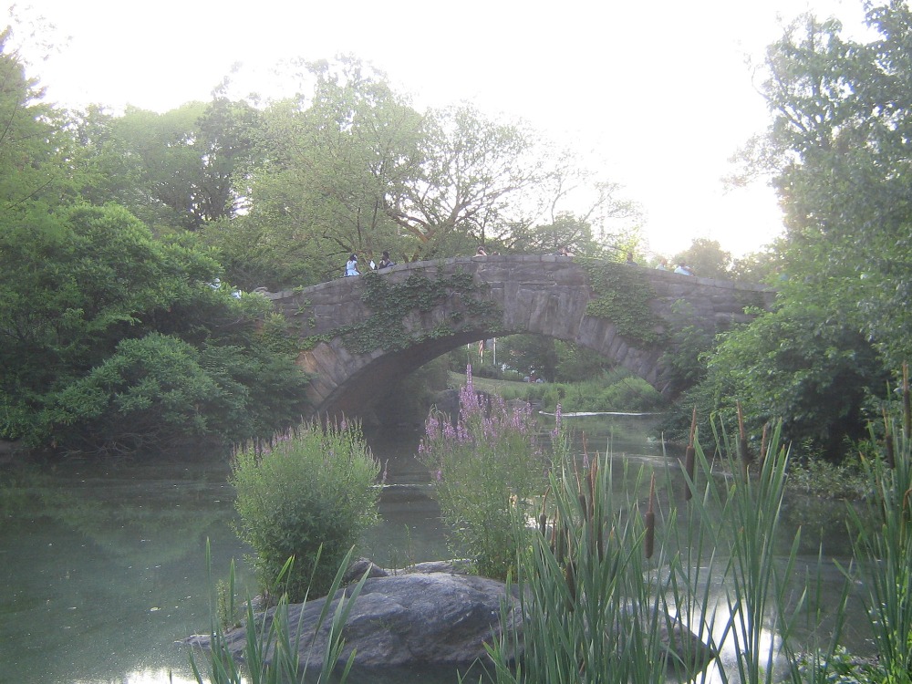 Vcházíme znovu do Parku, tentokrát jihovýchodním vchodem. Jdeme po cestičce se skálou a jezírkem po levé straně až k poslední položce našeho dnešního programu: Gapstow Bridge. (foto níže) Je to kamenný most z roku 1896, oblíbený svatebčany a filmaři. Samozřejmě se na něm fotíme, s korunami stromů a mrakodrapy v pozadí. Potom si ještě na chvíli sedneme na lavičku s výhledem na jezírko a Gapstow Bridge. Kolem je plno lidí a veverek. Všichni jsou v pohodě.