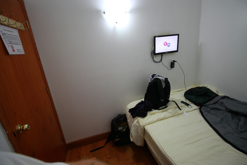 Po příjezdu a bezproblémové domluvě na recepci jsme dostali klíčky od pokoje. Jak jsem již psal pokoj byl čistý, klimatizovaný a dále vybaven psacím stolem a TV s plochou obrazovkou, na které jsme po zapnutí nic kromě šumivého obrazu nechytili. Na druhou stranu je fér úvest, že jsme se o to zase tak moc nesnažili, protože jsme byli na pokoji opravdu pouze přespat.