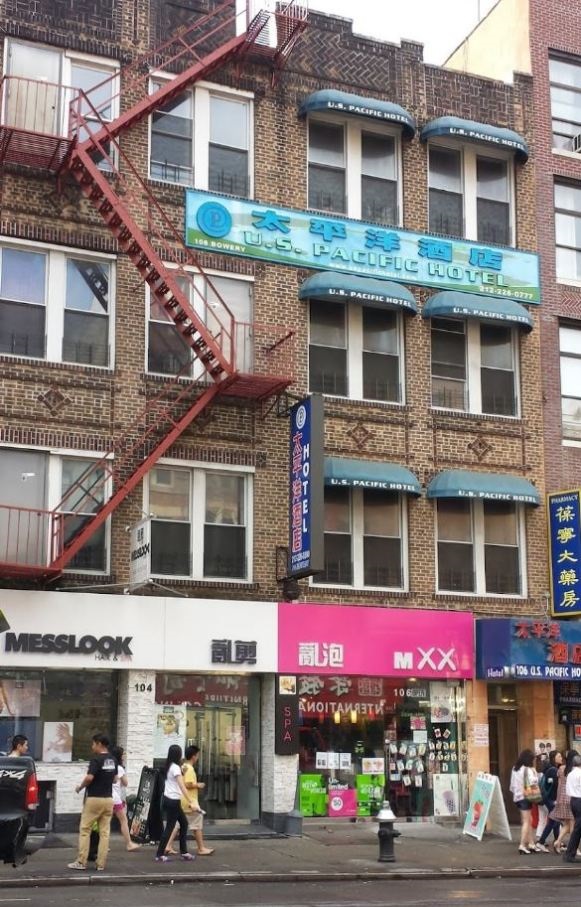 U.S. Pacific Hotel se nachází v Čínské čtvrti Chinatown (106 Bowery 2FL, Chinatown, New York, NY 10013, USA)
