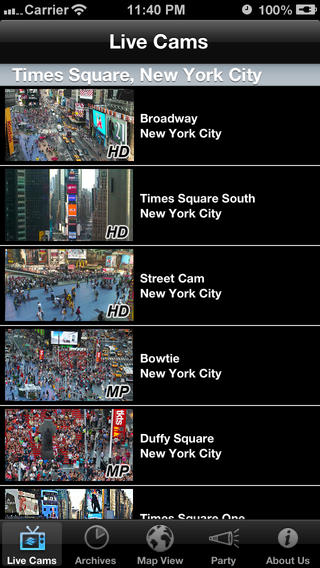 Mobilní aplikace se všemi webovými kamerami na Times Square: