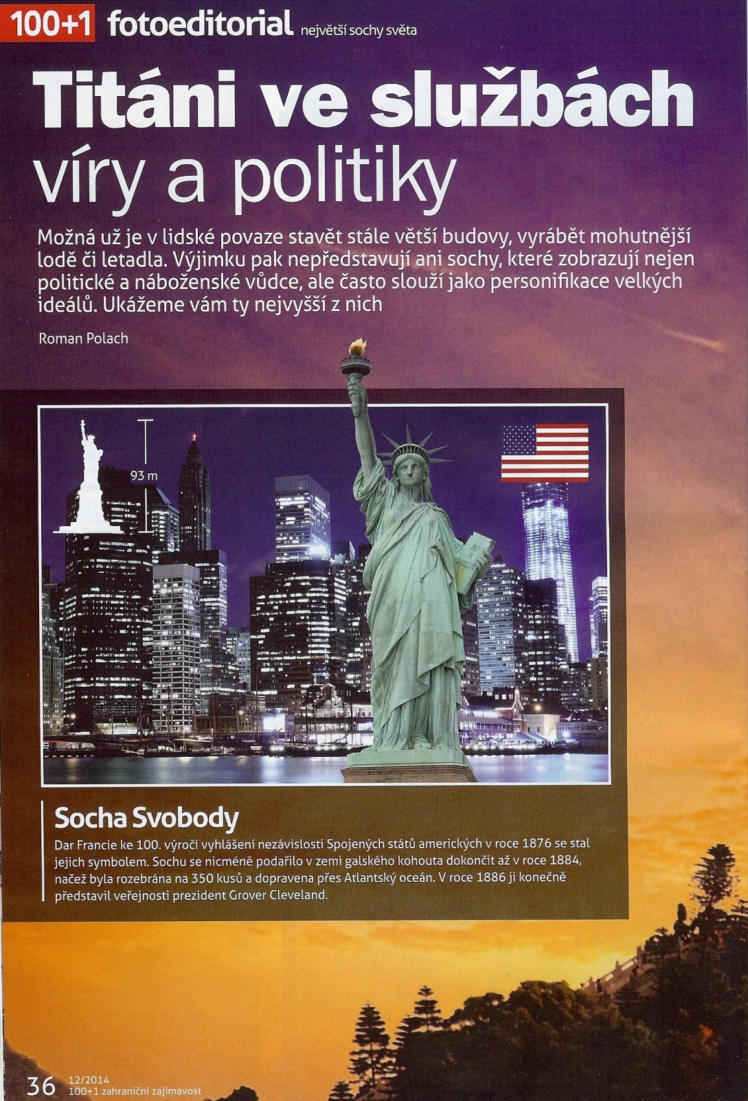 | jednostránkový článek o soše Svobody z článku "Titáni ve službách víry a politiky" |