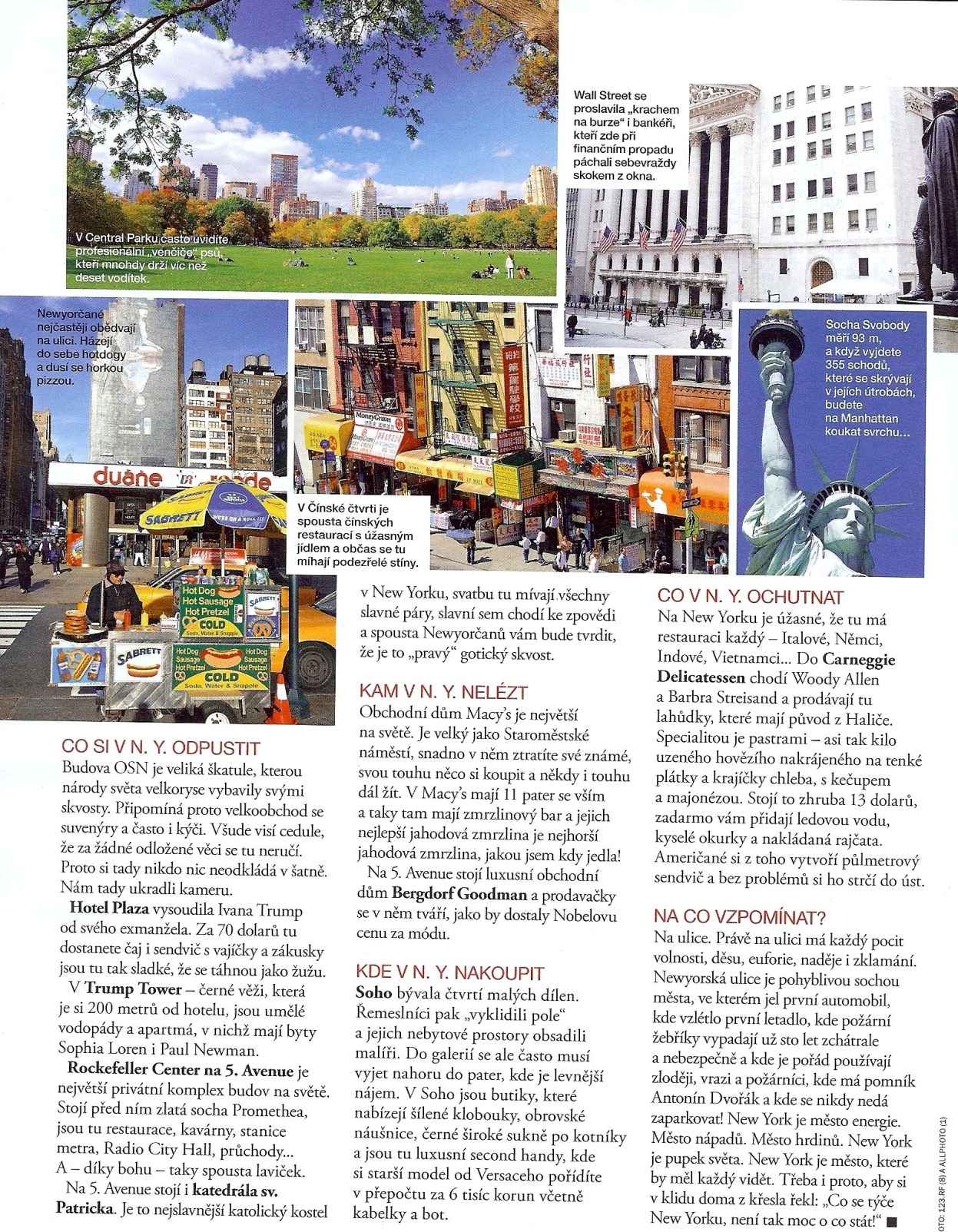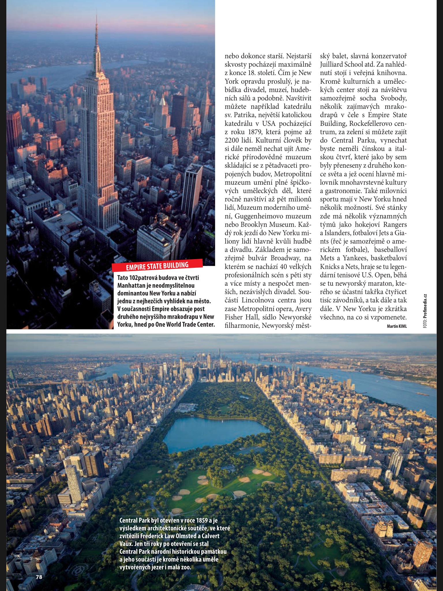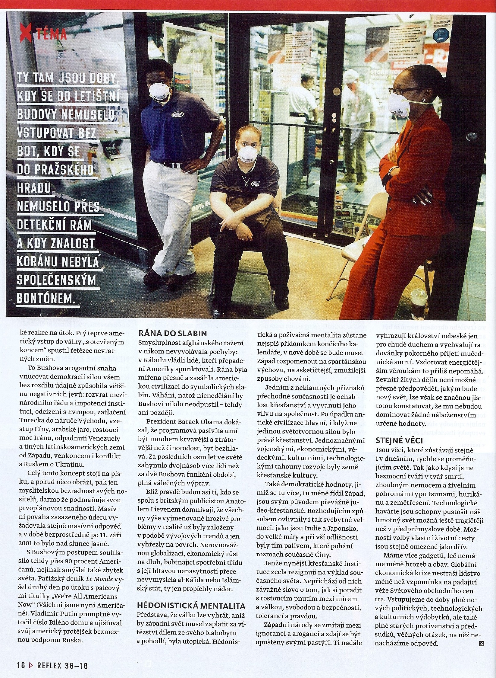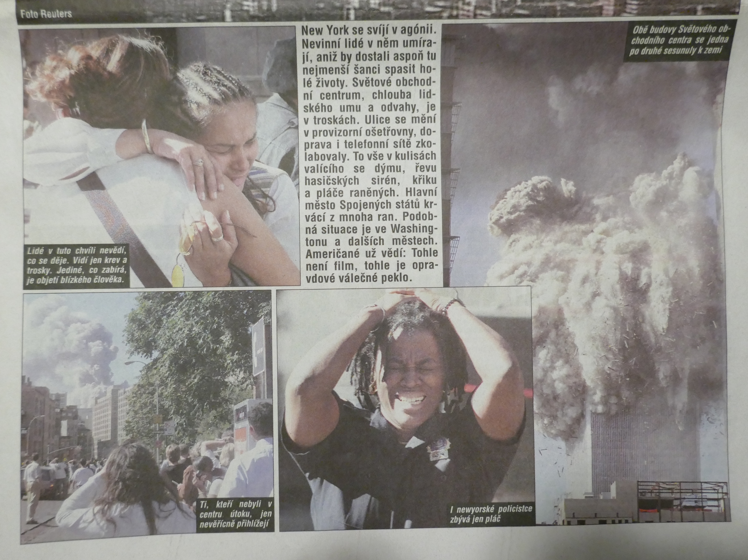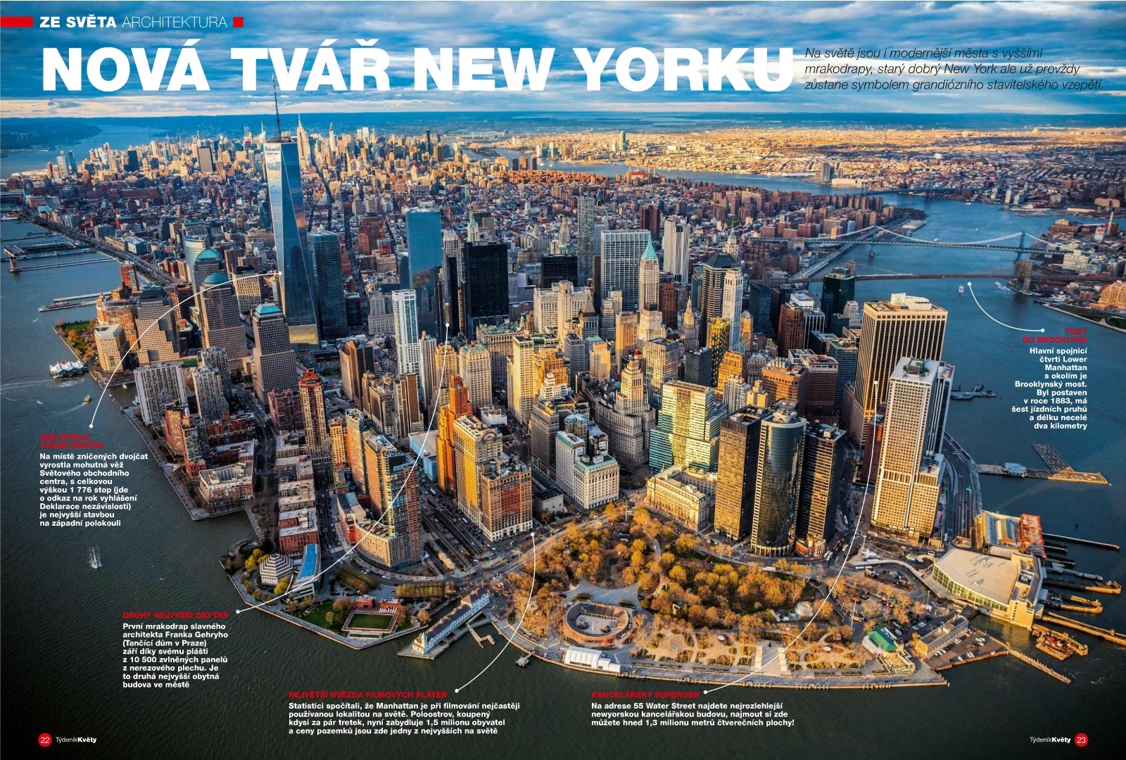 | dvoustránkový článek k 15.výročí teroristických útoků | dvoustránkový článek o místě, kde stála Dvojčata WTC |