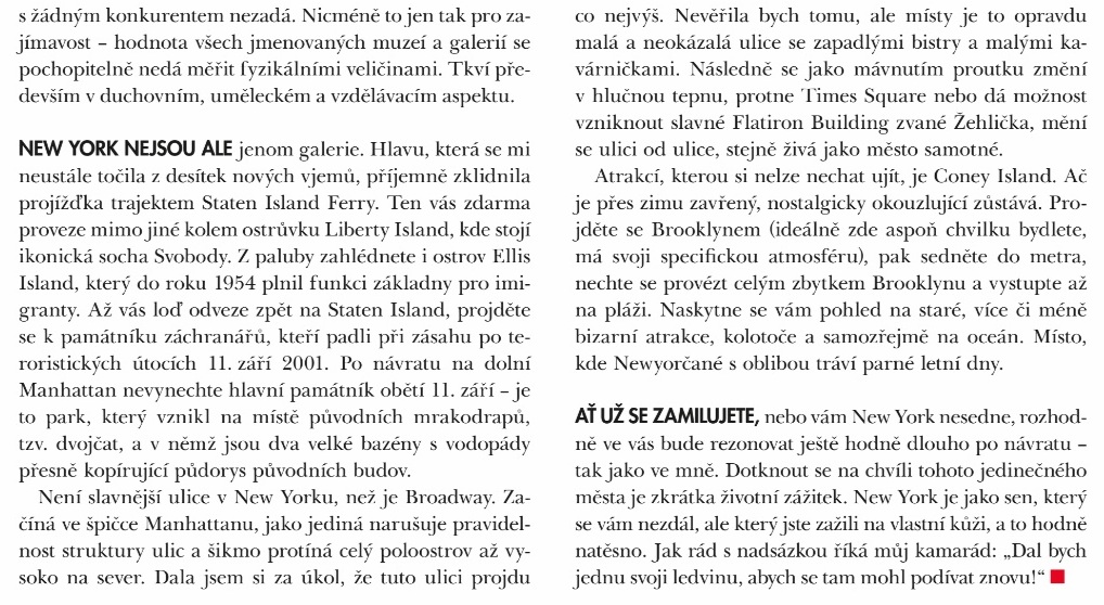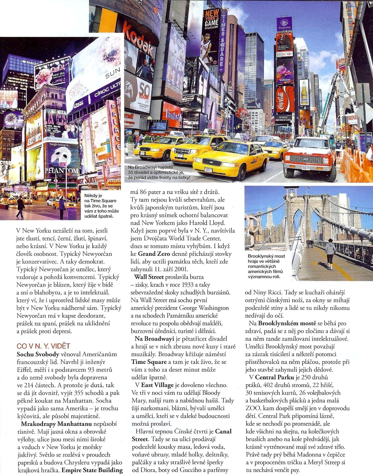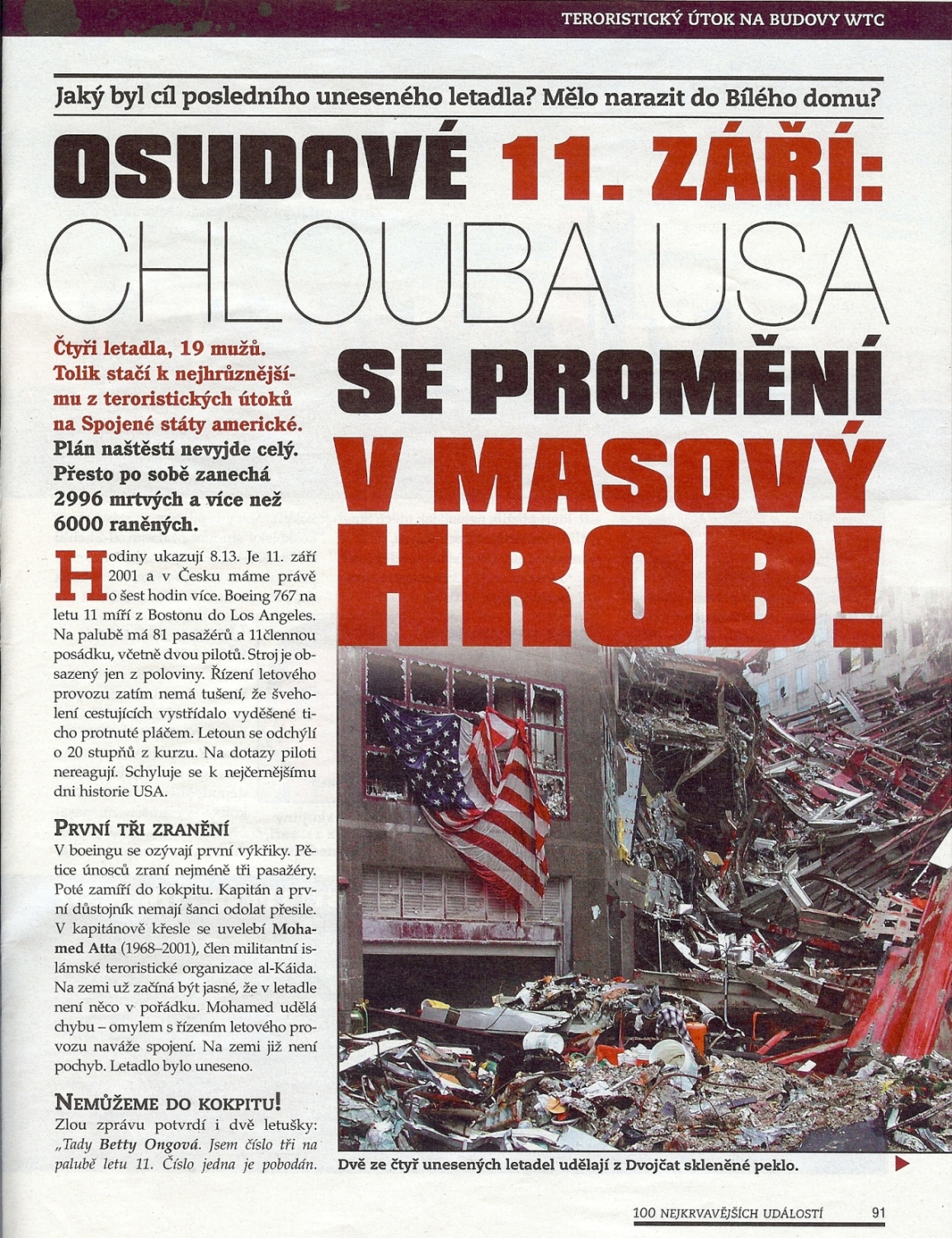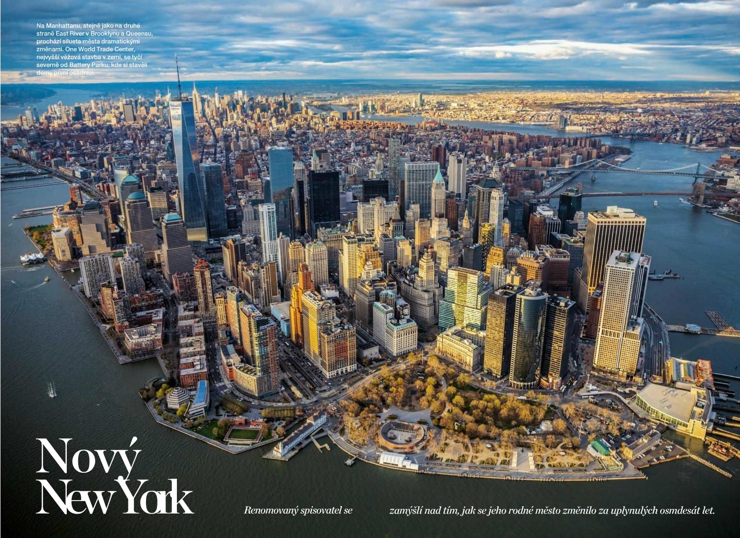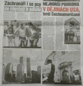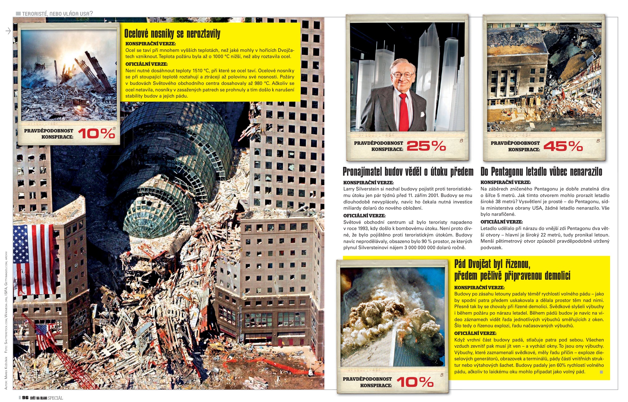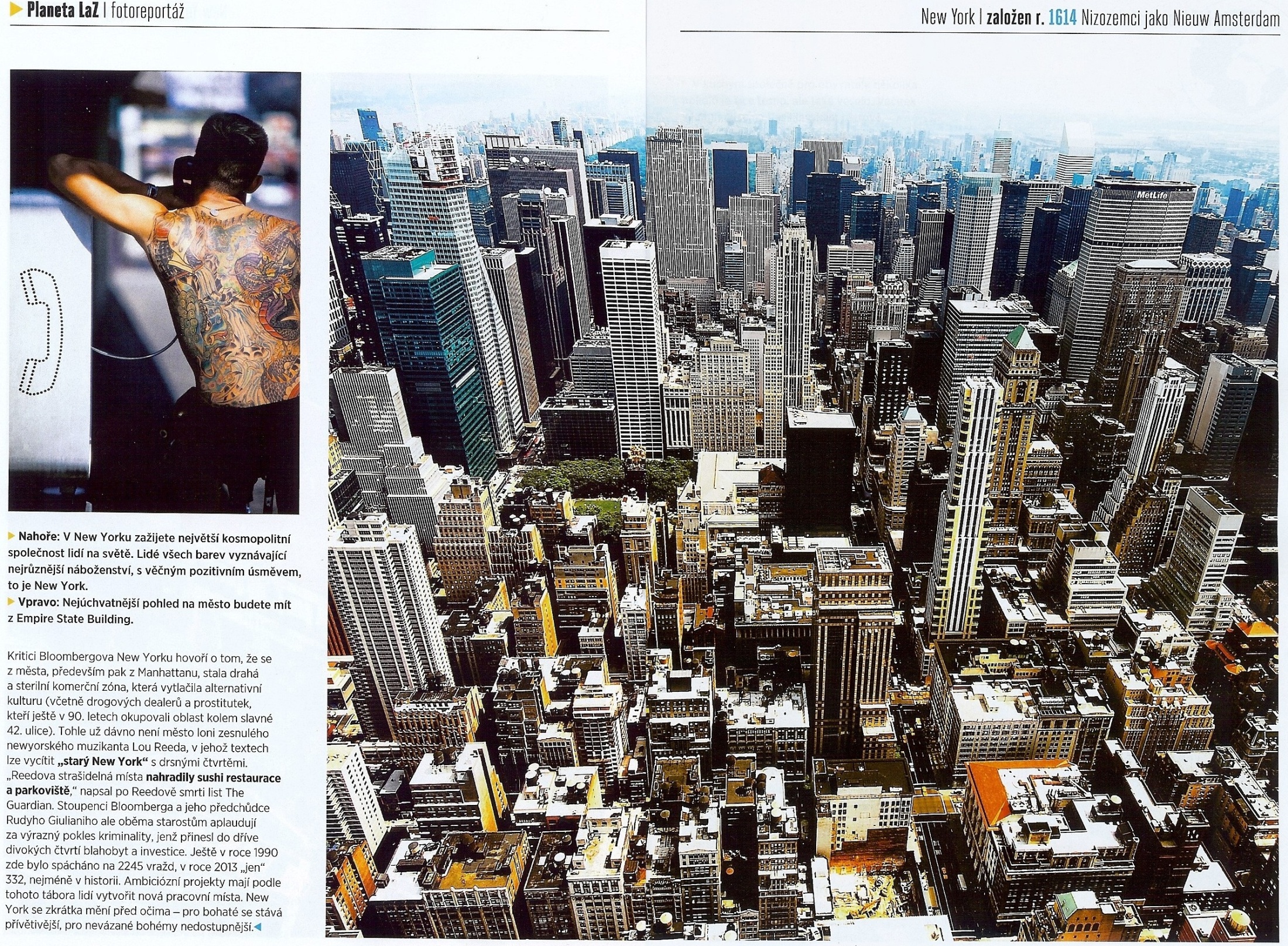 | dvoustránkový článek k 15.výročí teroristických útoků | dvoustránkový článek o místě, kde stála Dvojčata WTC |