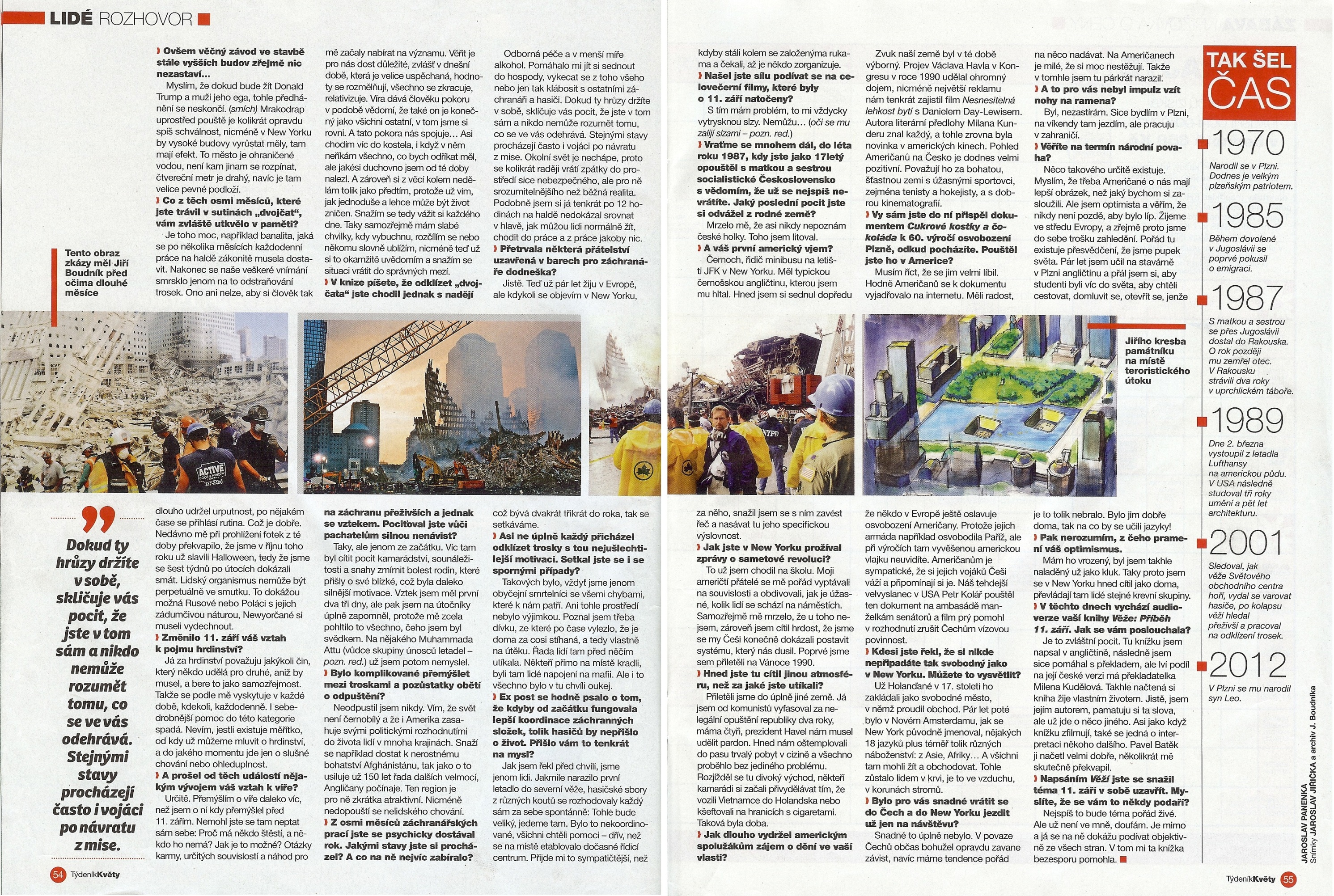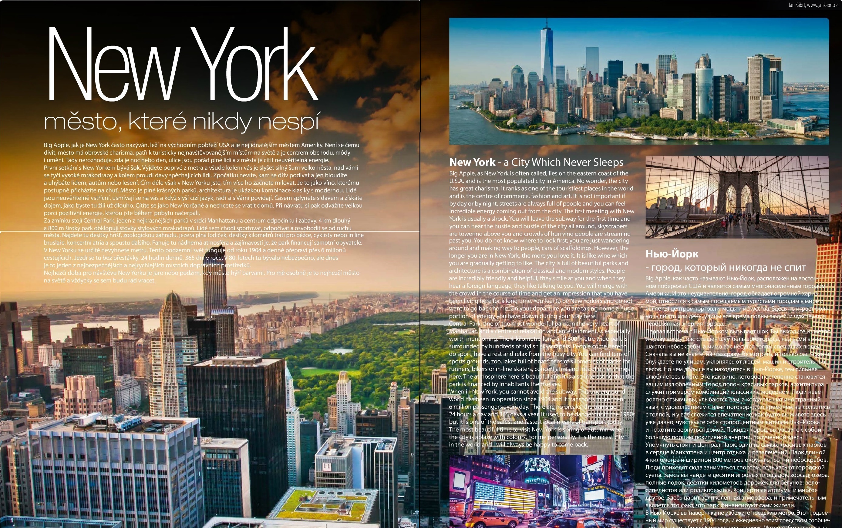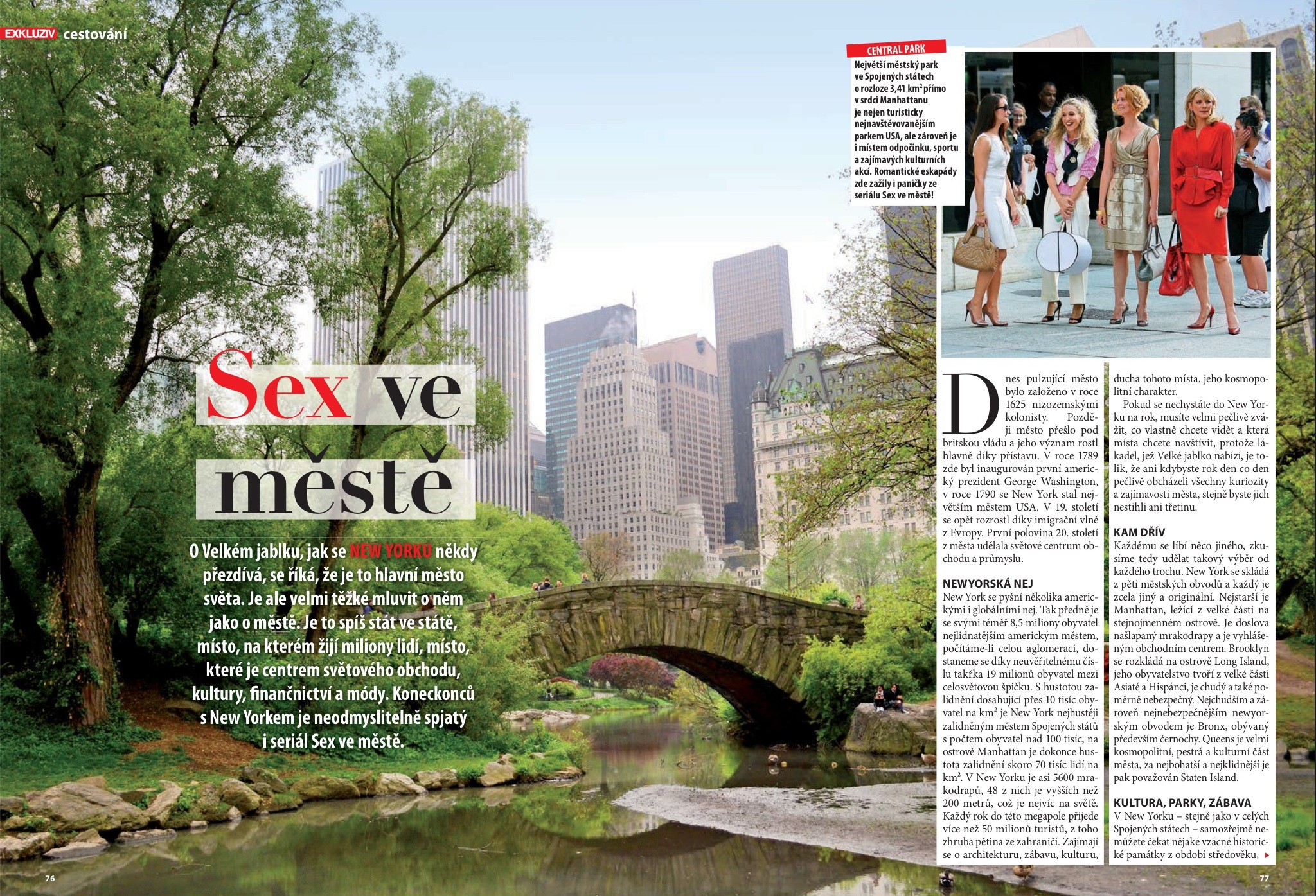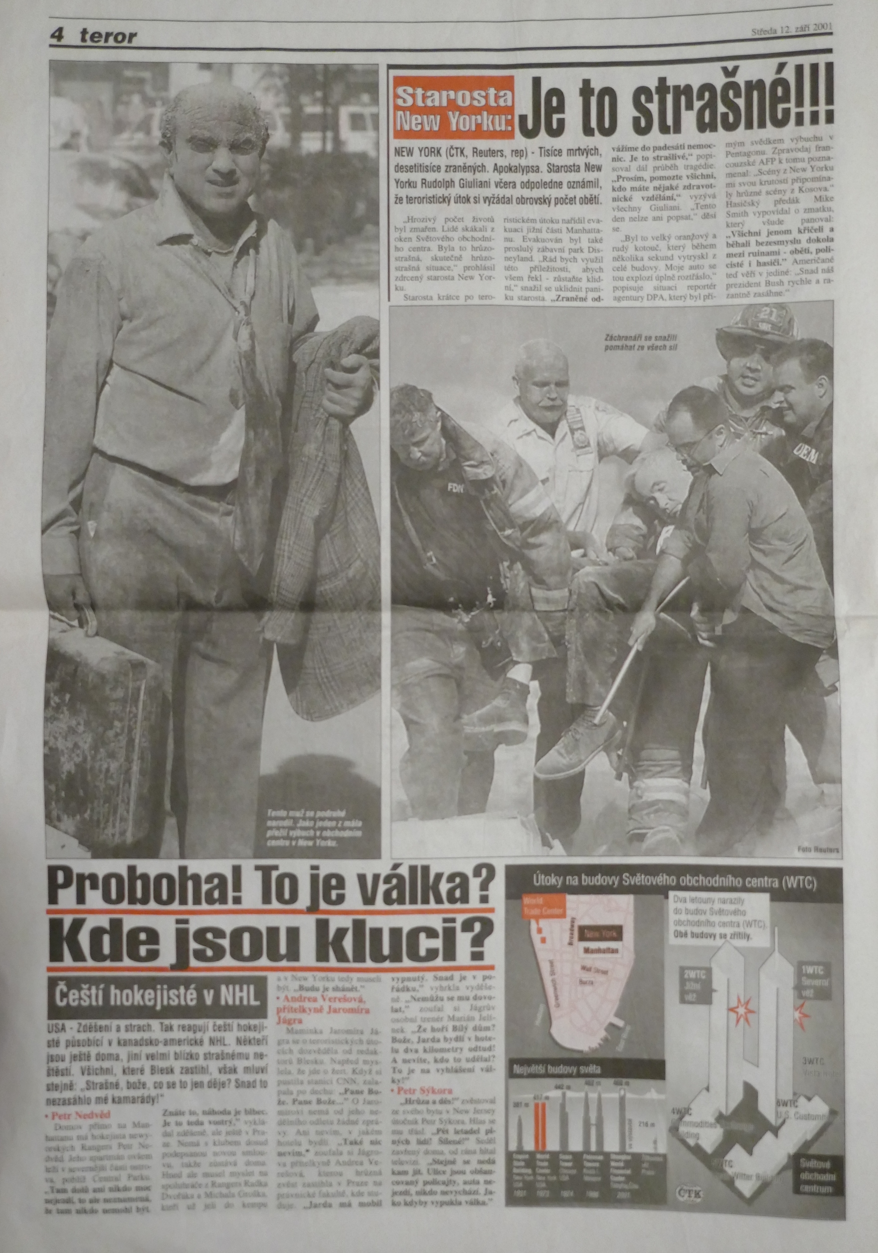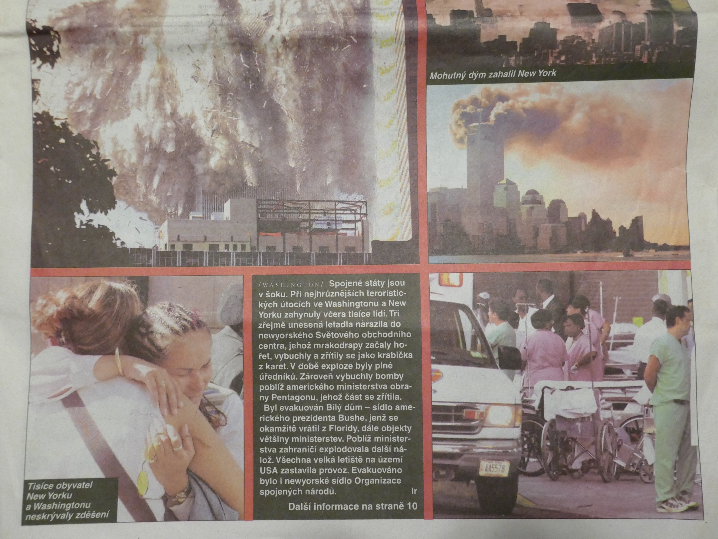 | dvoustránkový článek k 15.výročí teroristických útoků | dvoustránkový článek o místě, kde stála Dvojčata WTC |