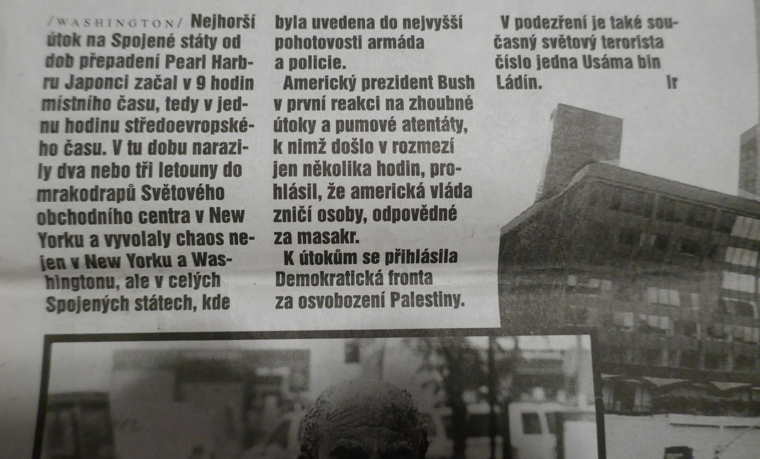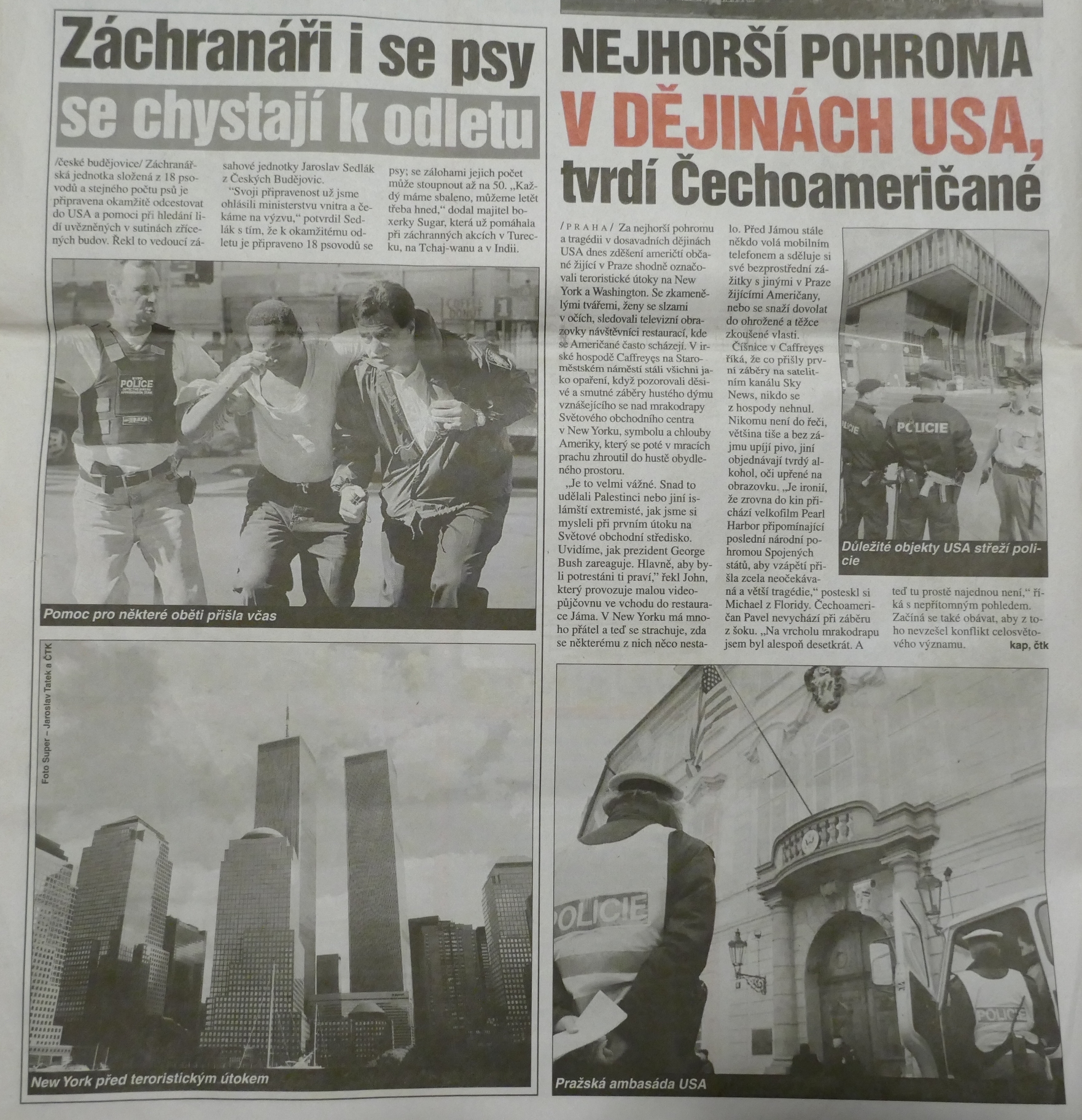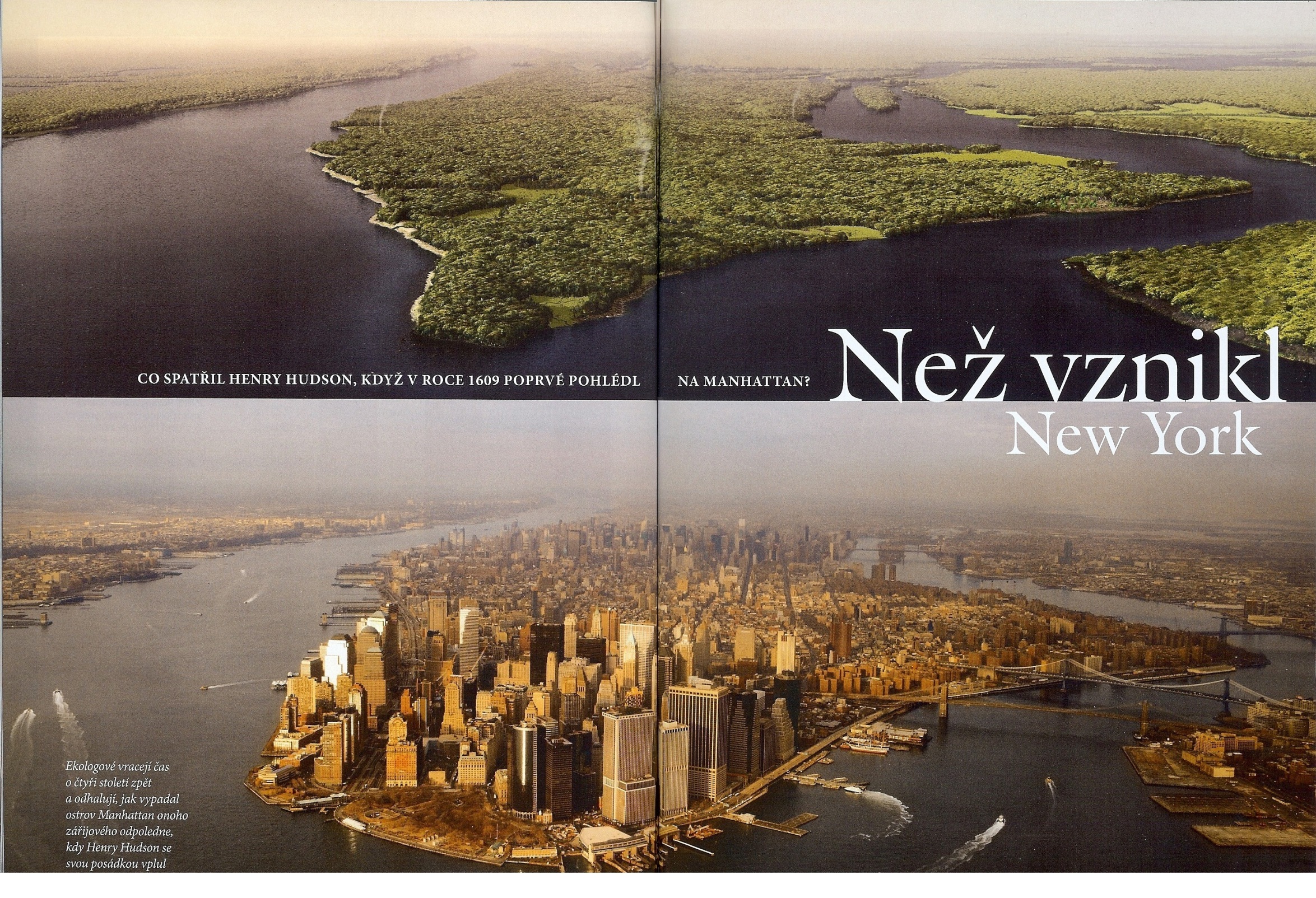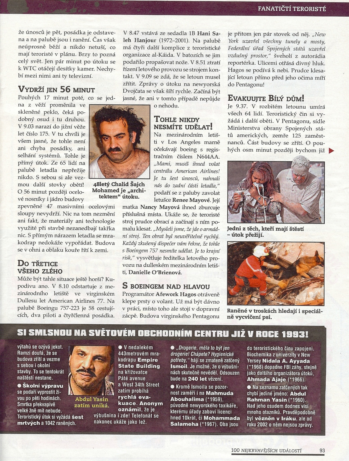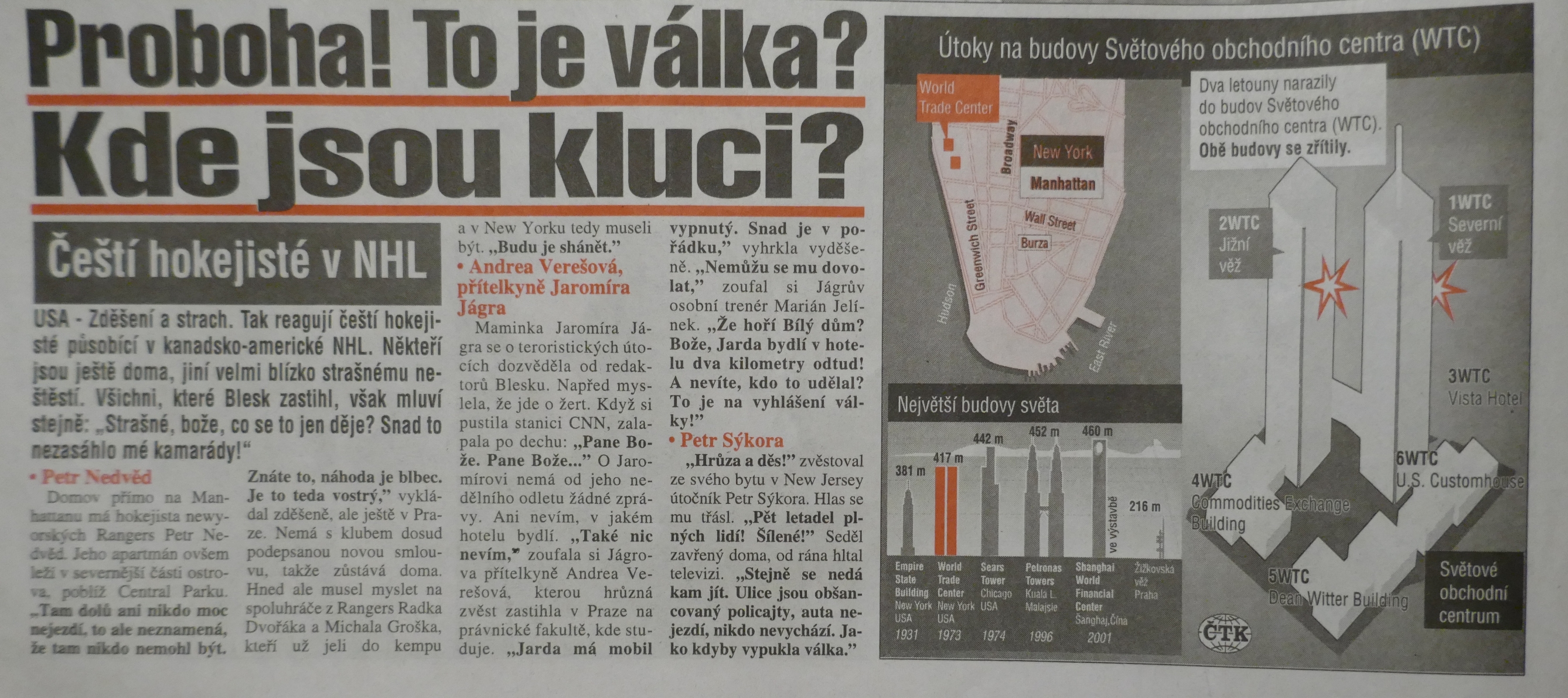 | dvoustránkový článek k 15.výročí teroristických útoků | dvoustránkový článek o místě, kde stála Dvojčata WTC |