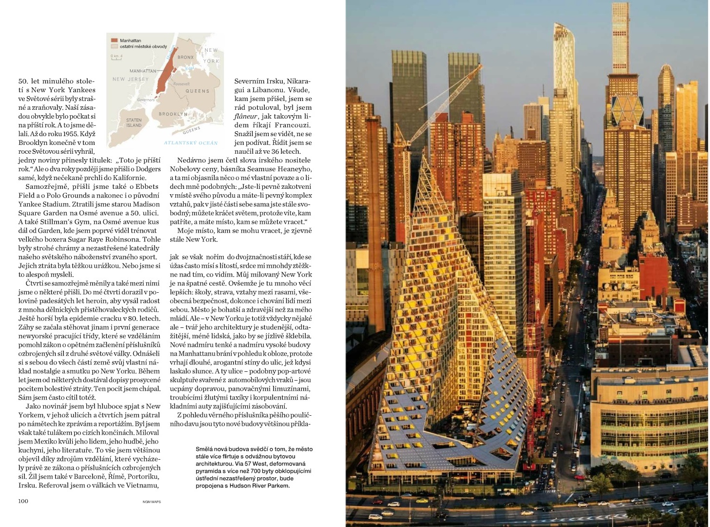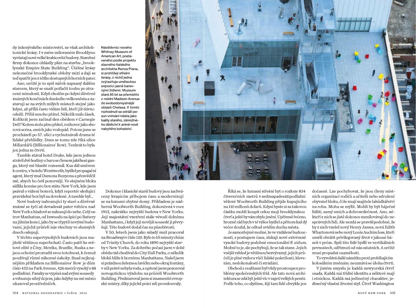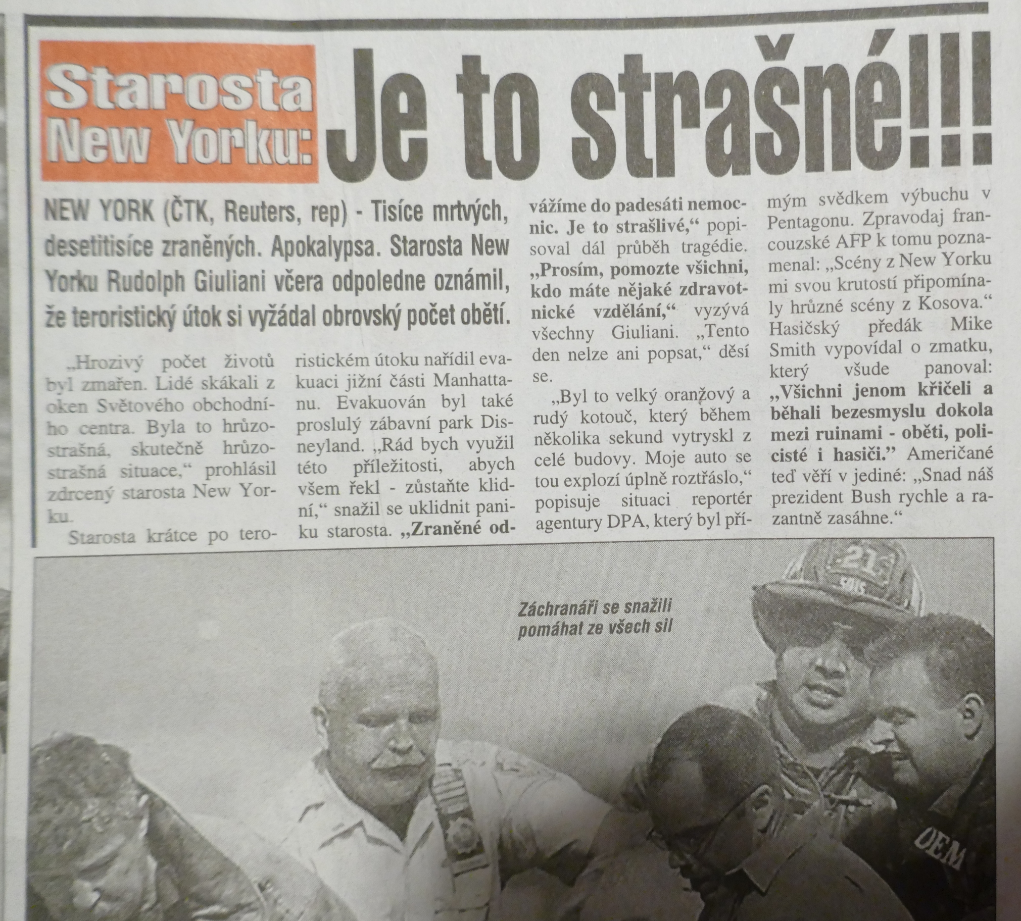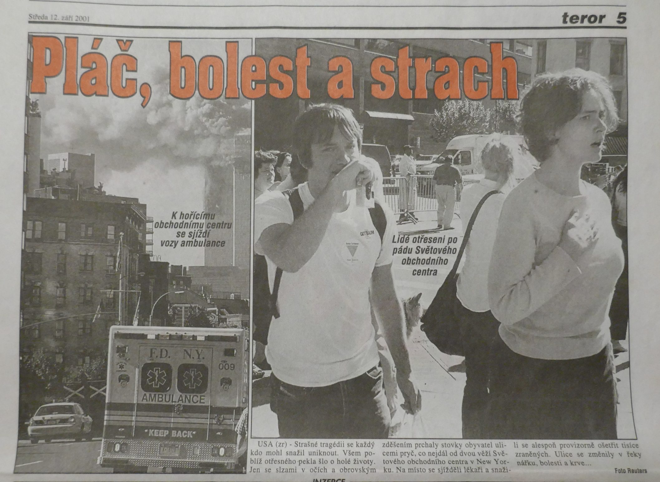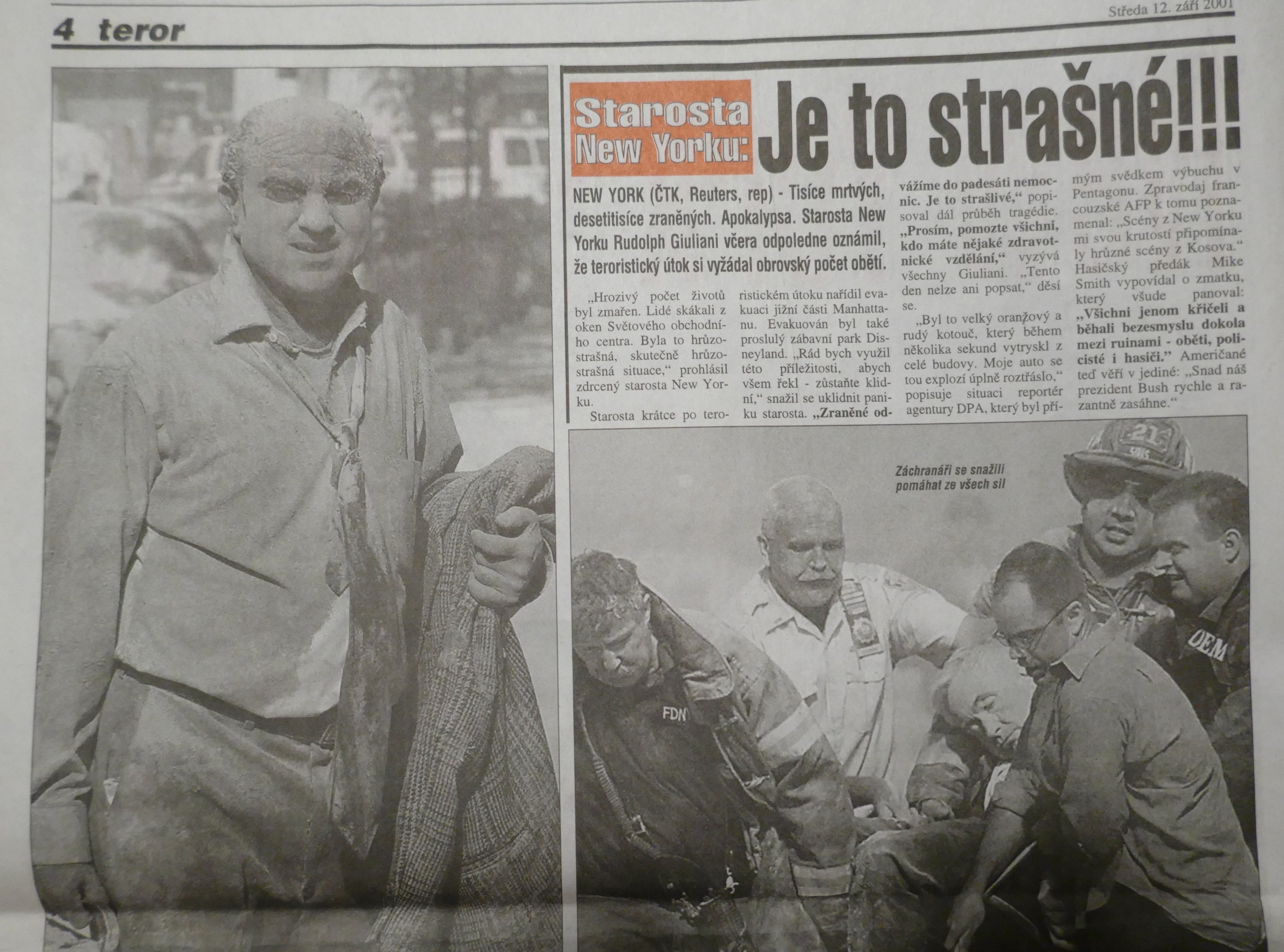 | dvoustránkový článek k 15.výročí teroristických útoků | dvoustránkový článek o místě, kde stála Dvojčata WTC |