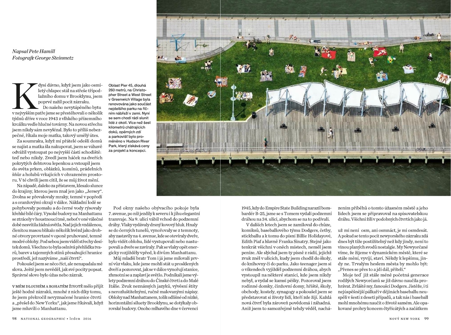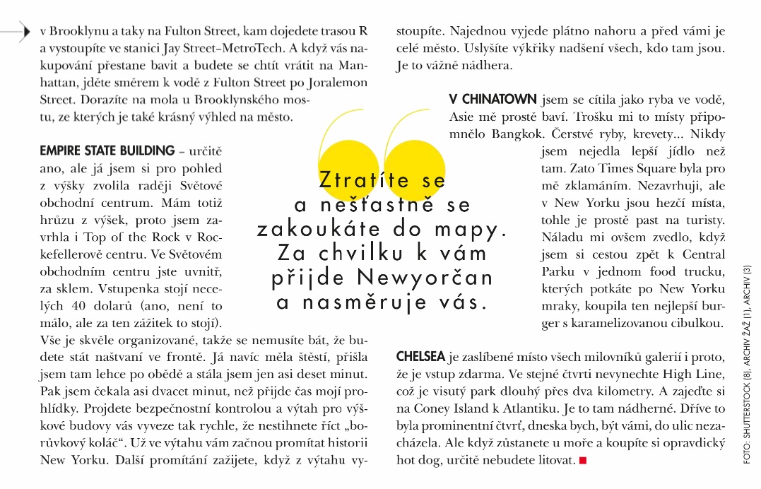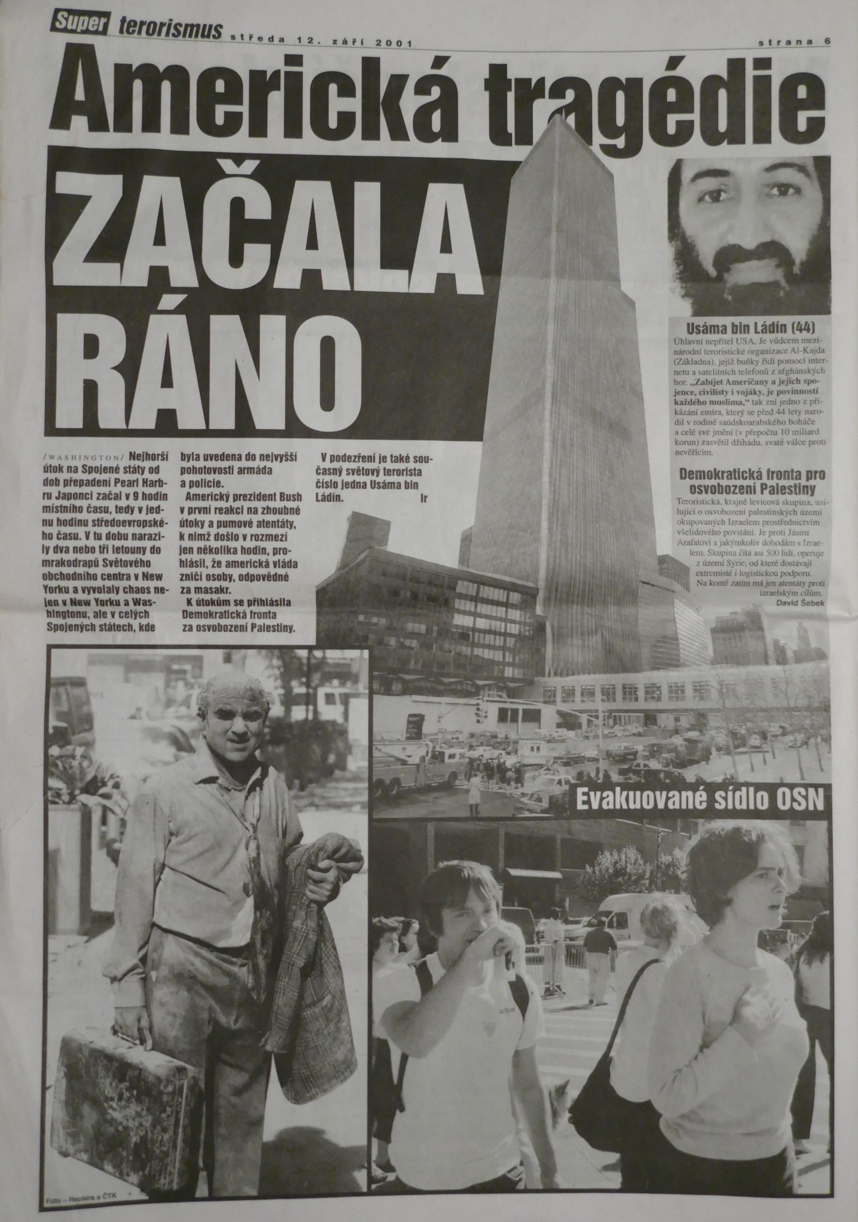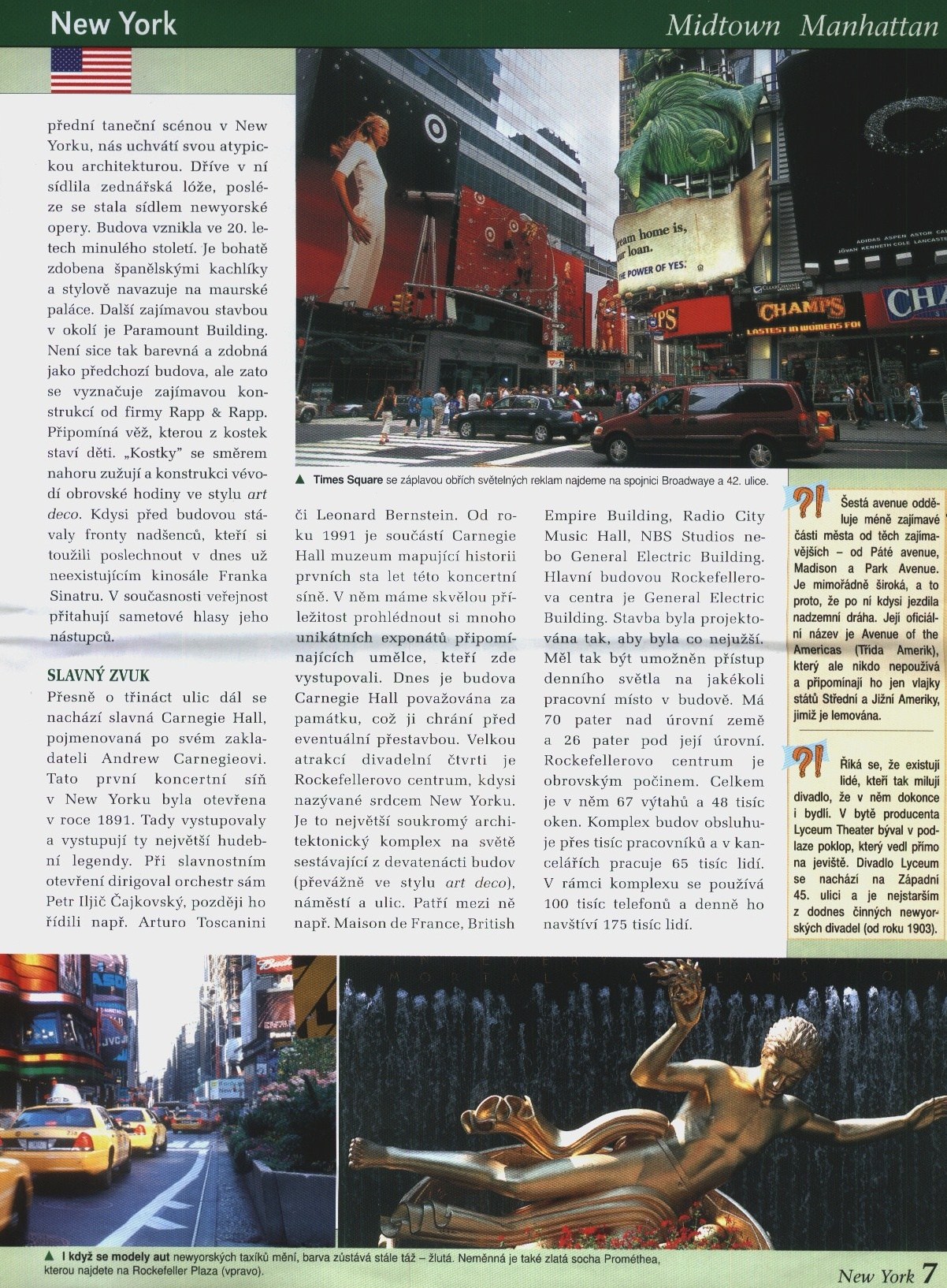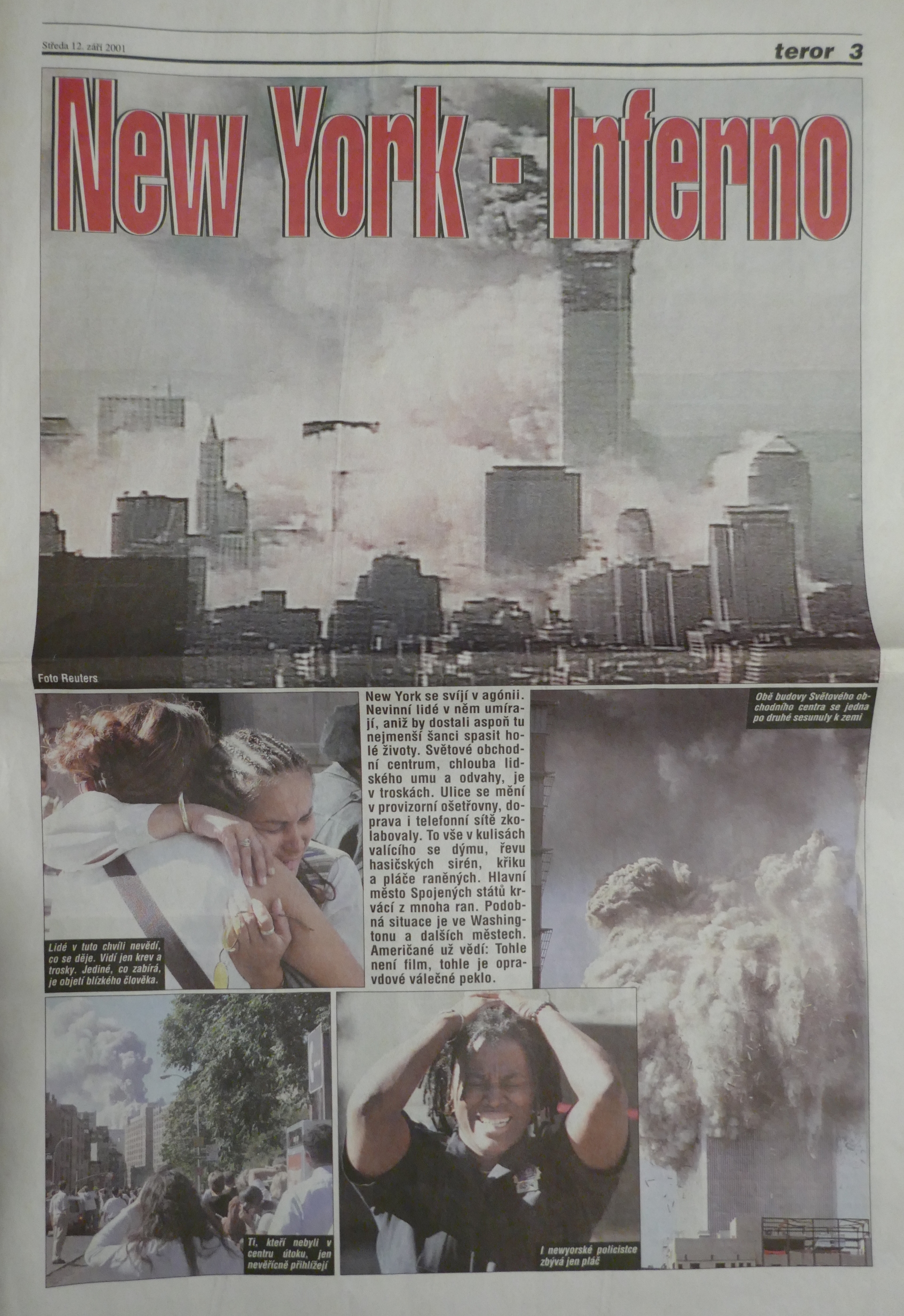 | dvoustránkový článek k 15.výročí teroristických útoků | dvoustránkový článek o místě, kde stála Dvojčata WTC |