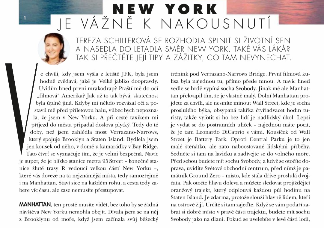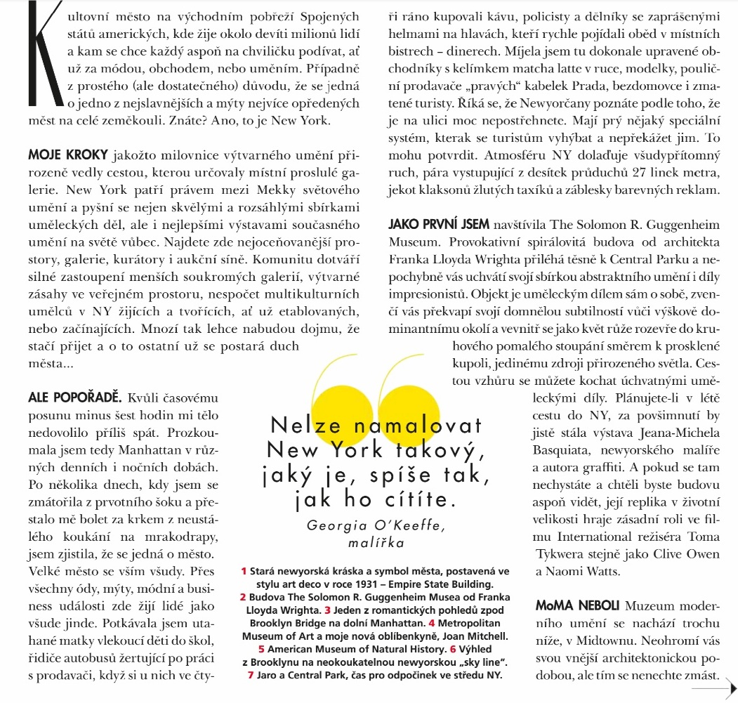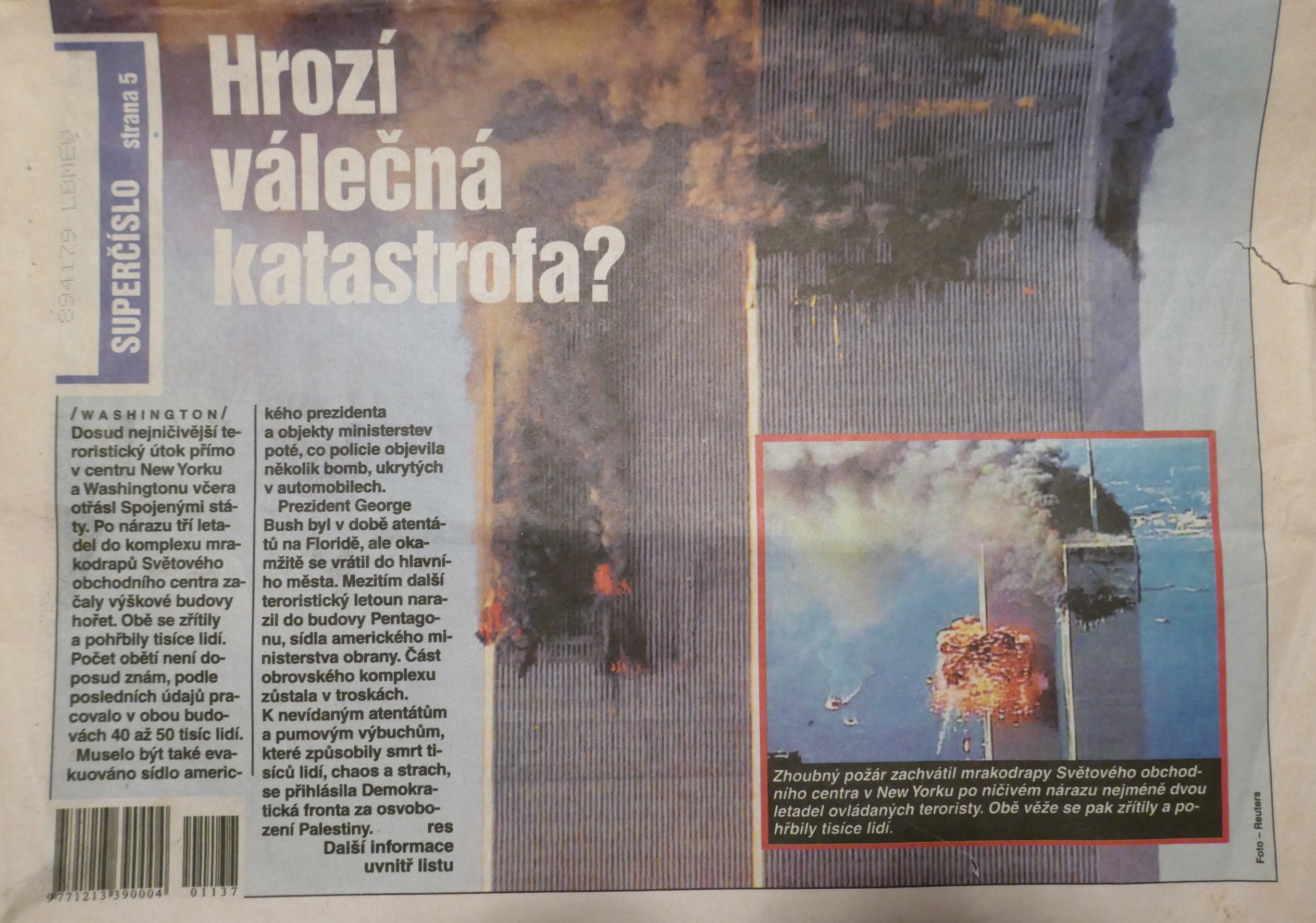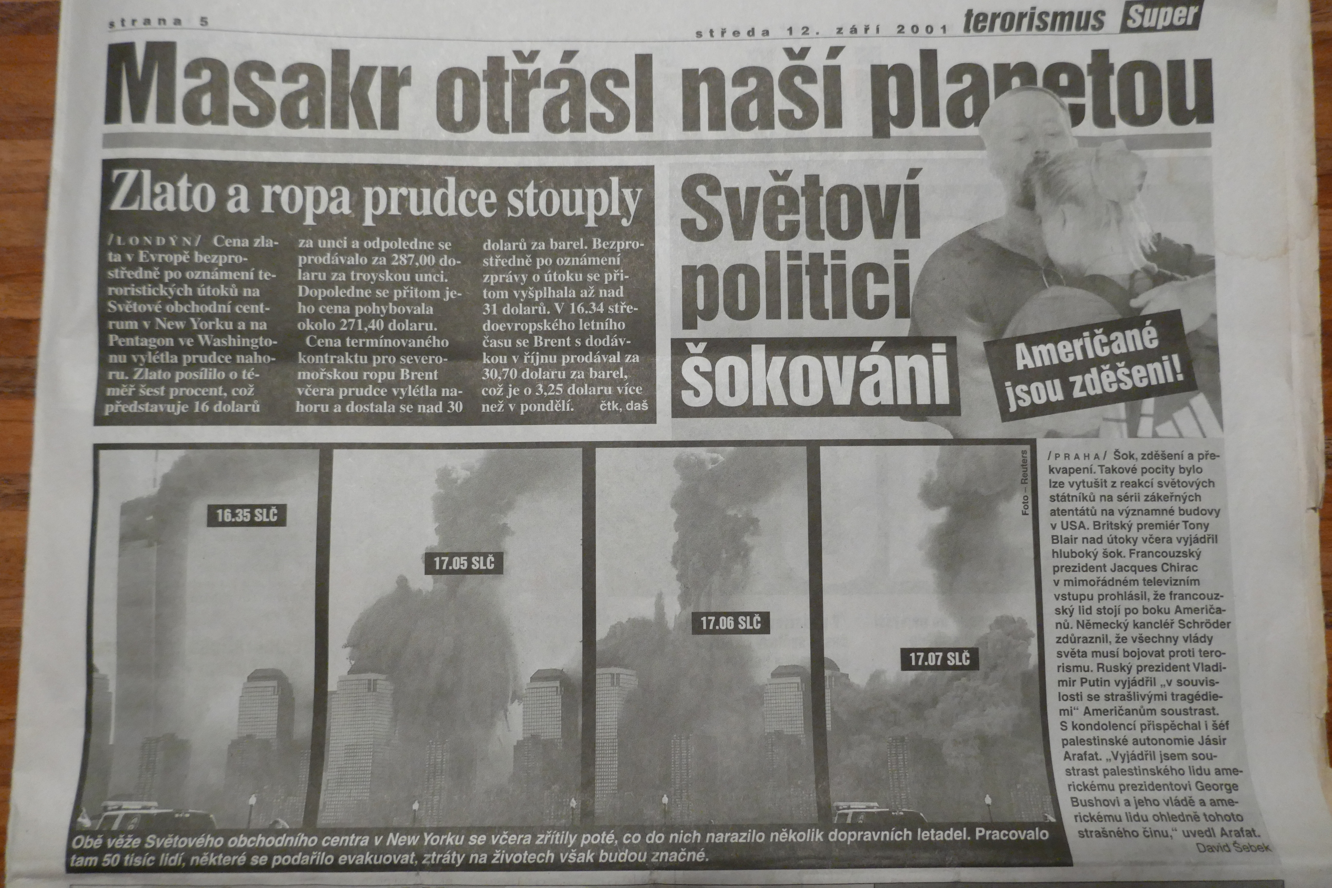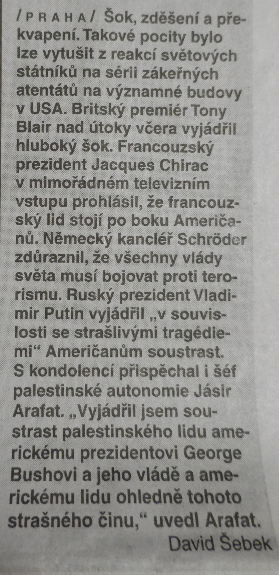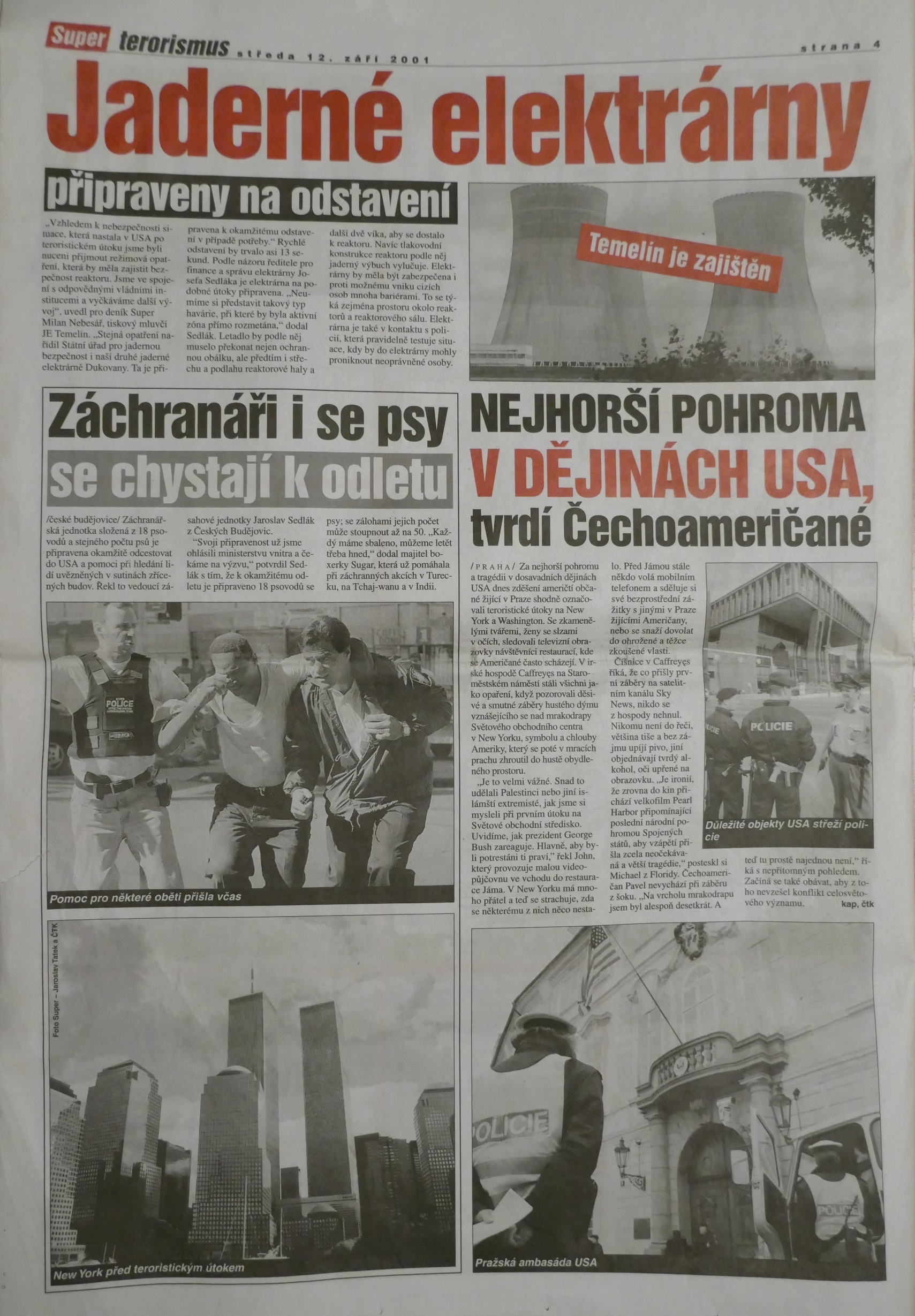 | dvoustránkový článek k 15.výročí teroristických útoků | dvoustránkový článek o místě, kde stála Dvojčata WTC |