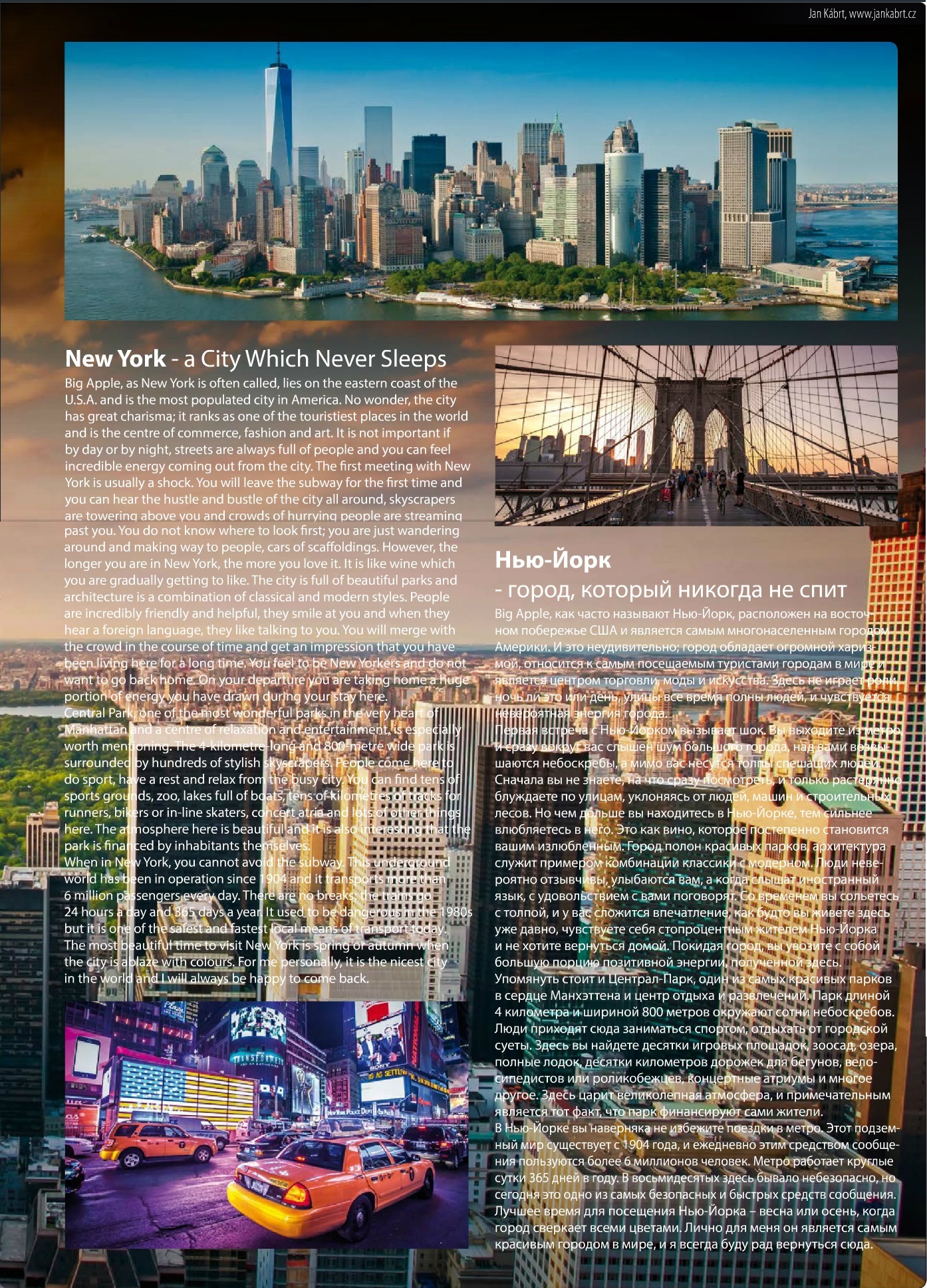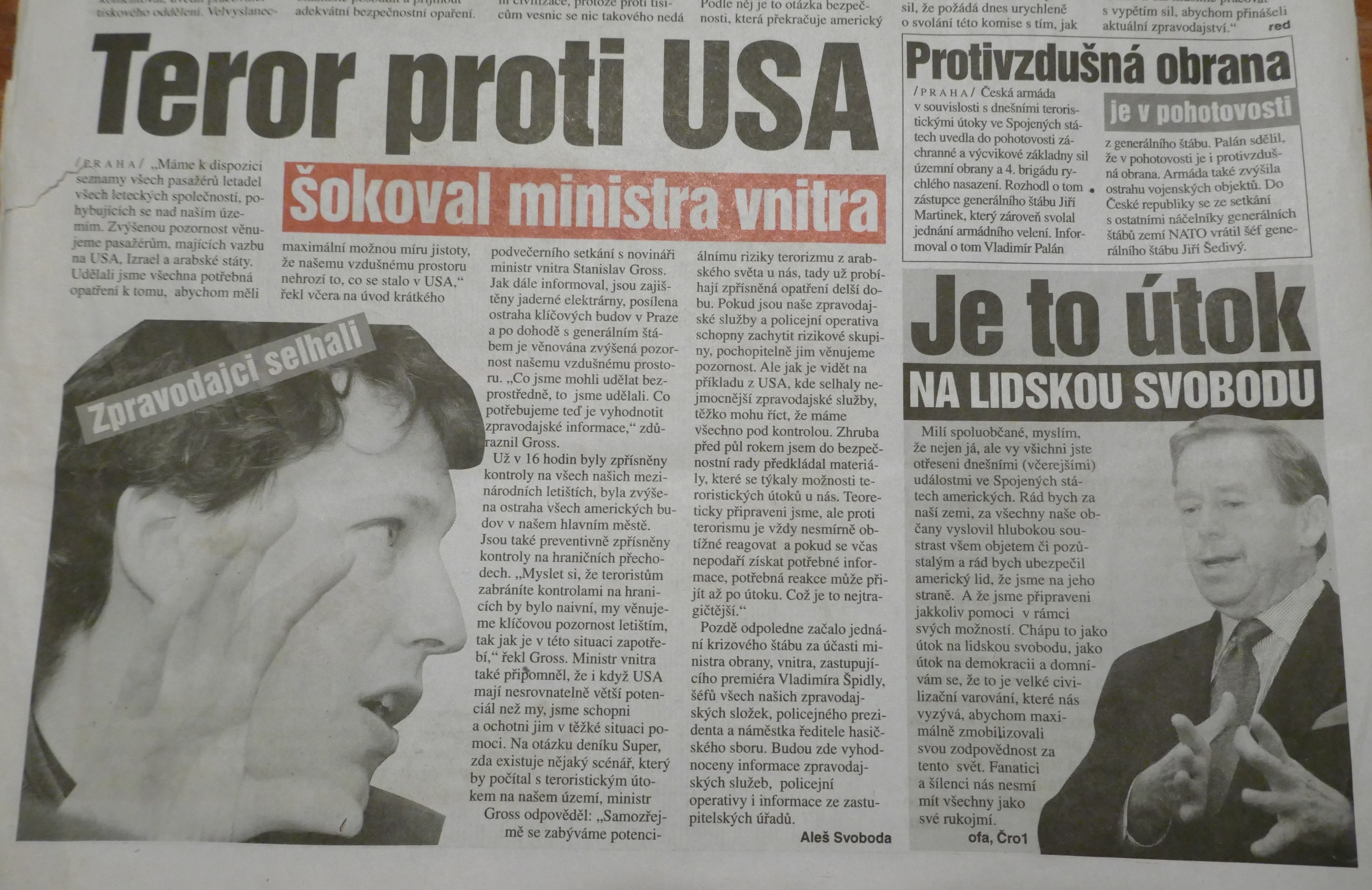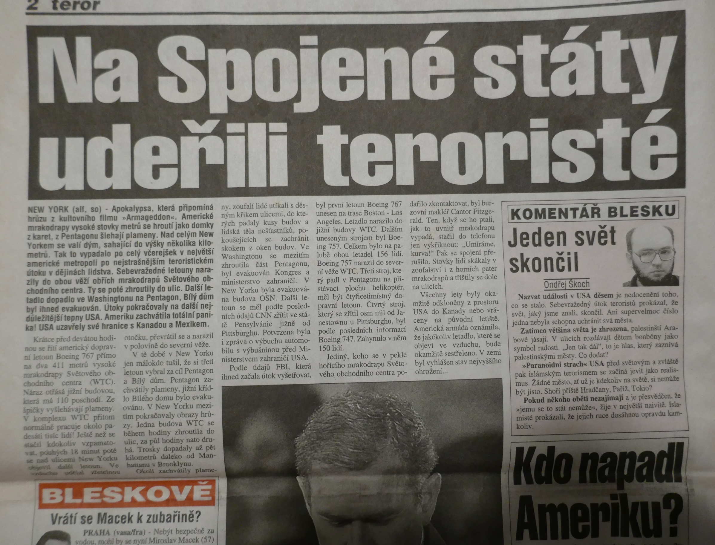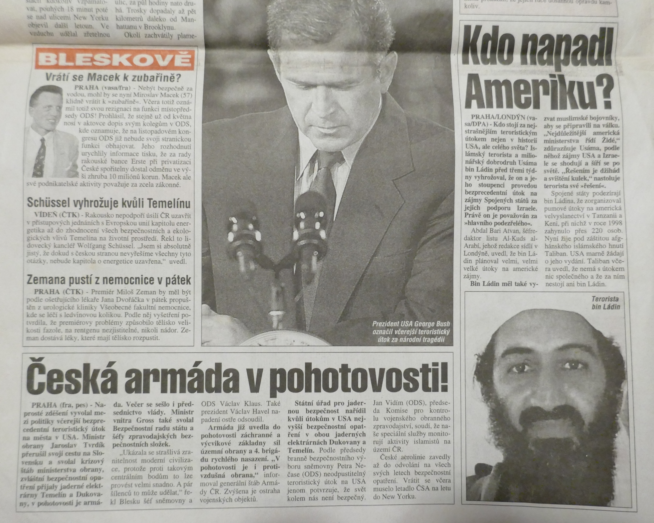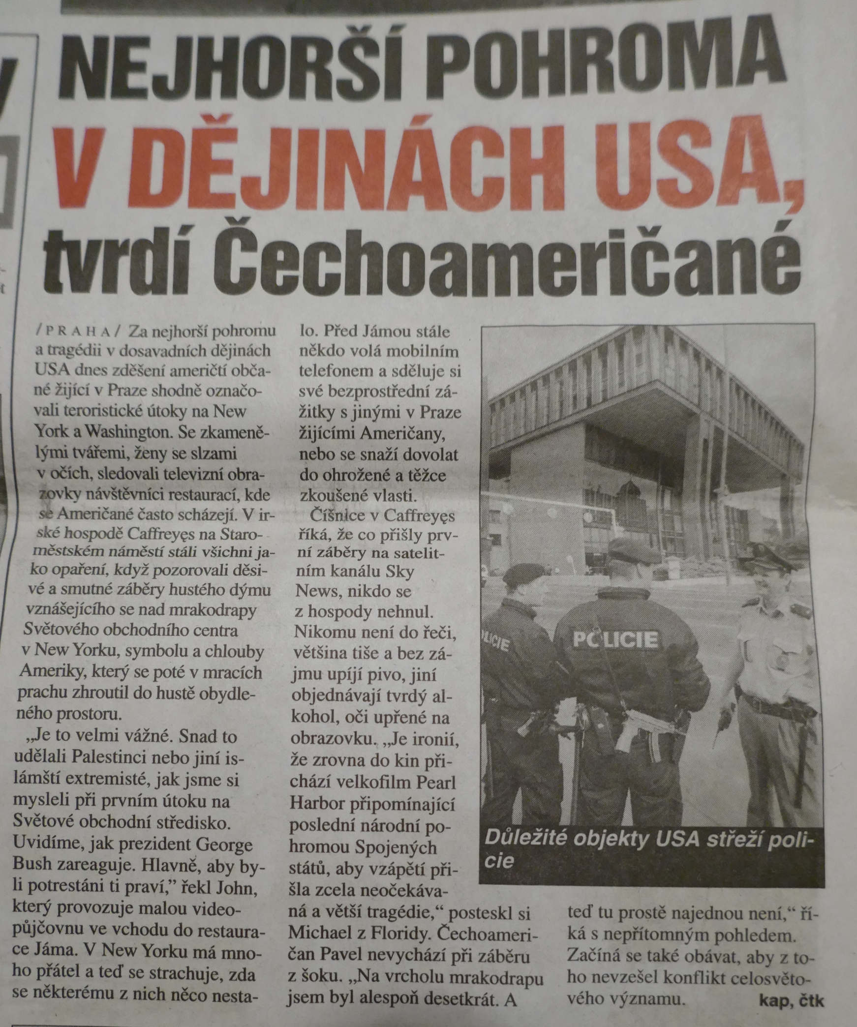 | dvoustránkový článek k 15.výročí teroristických útoků | dvoustránkový článek o místě, kde stála Dvojčata WTC |