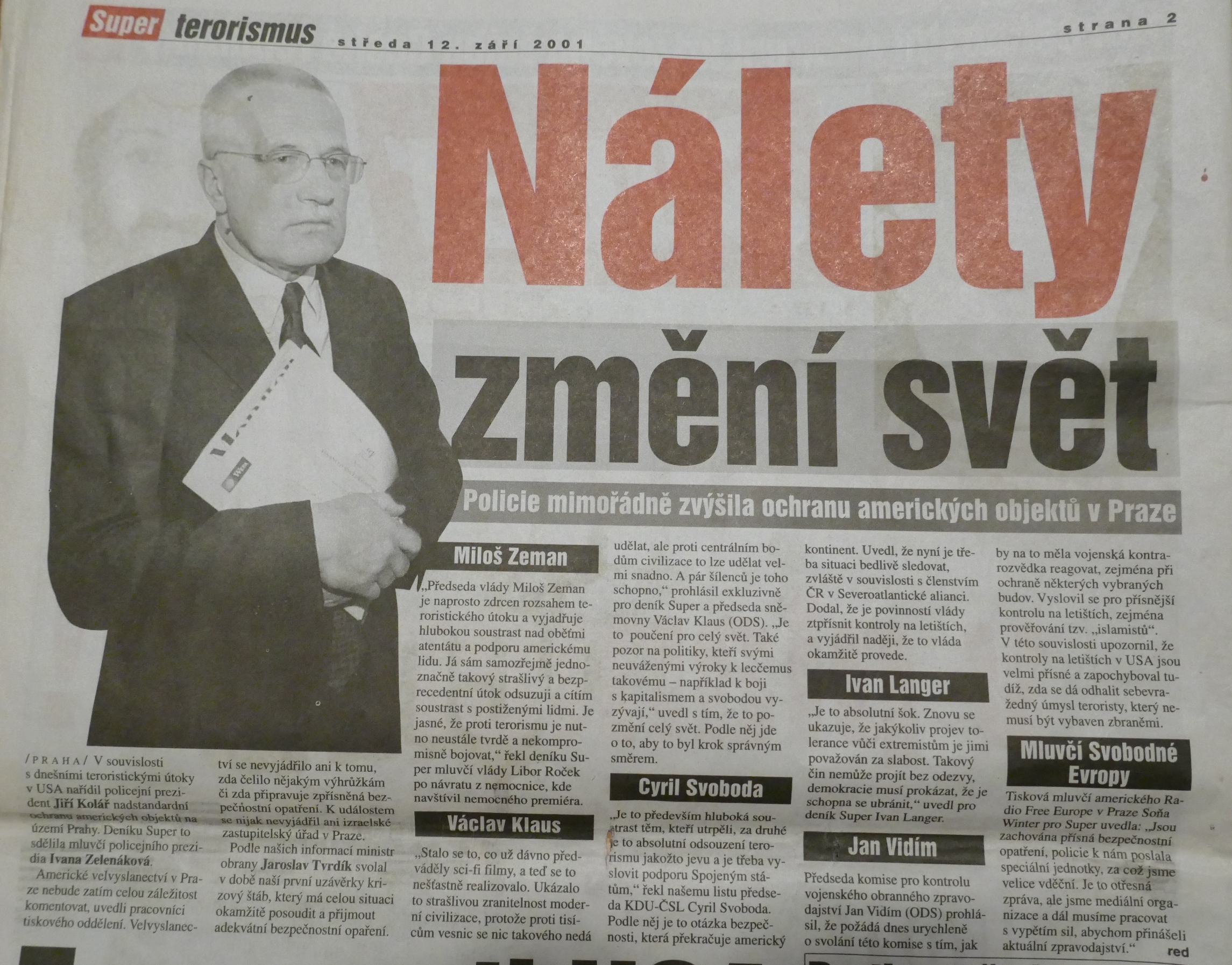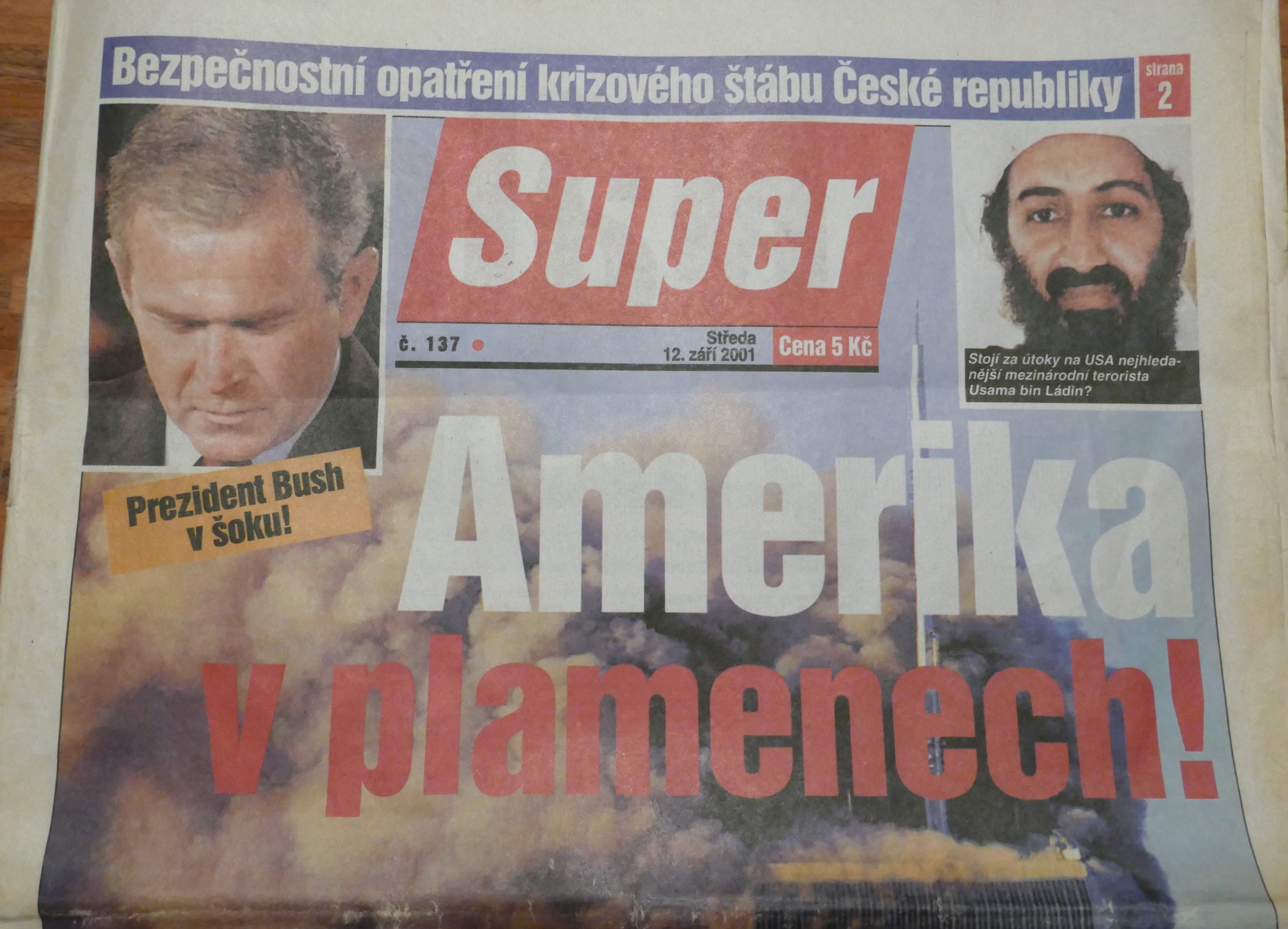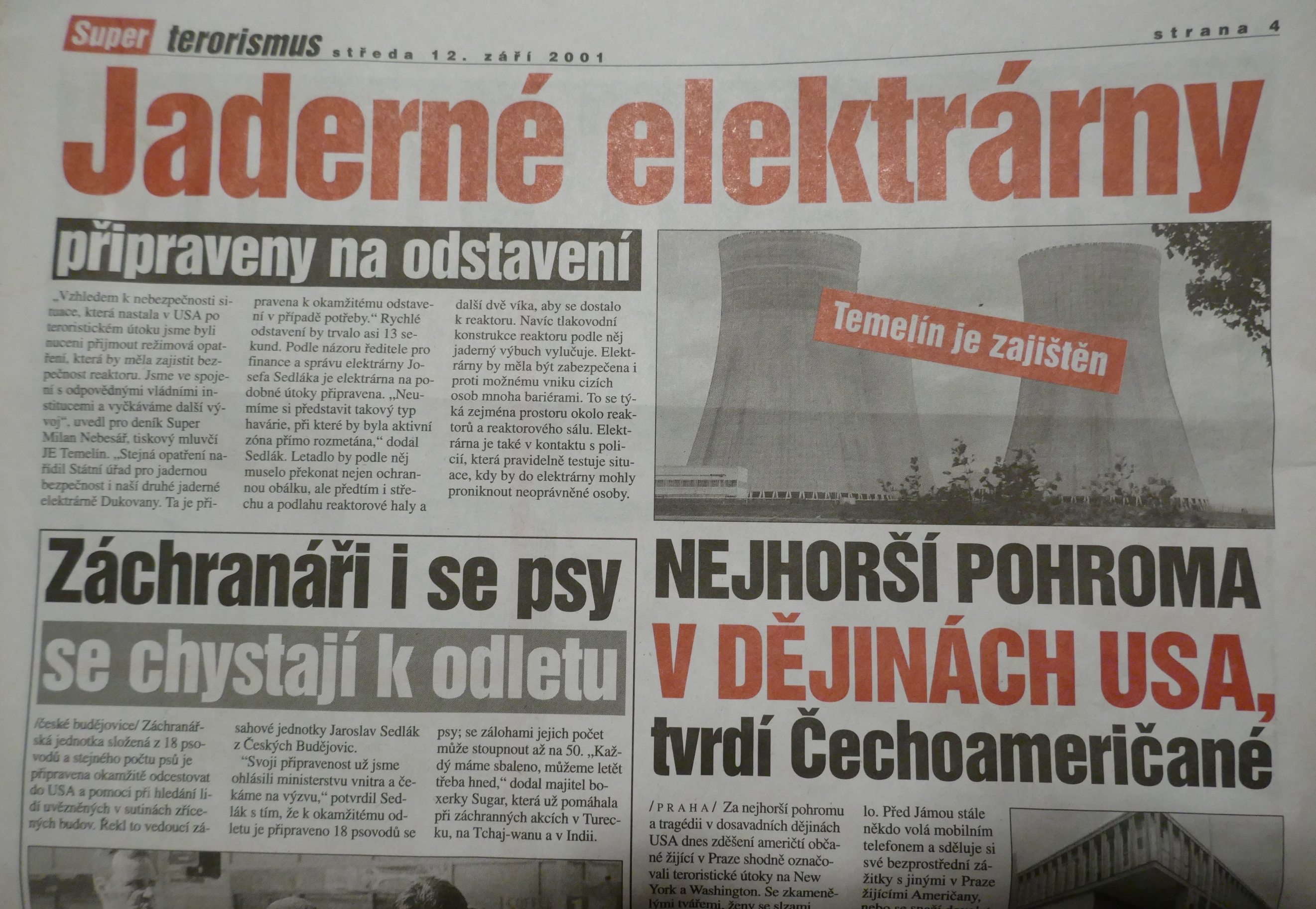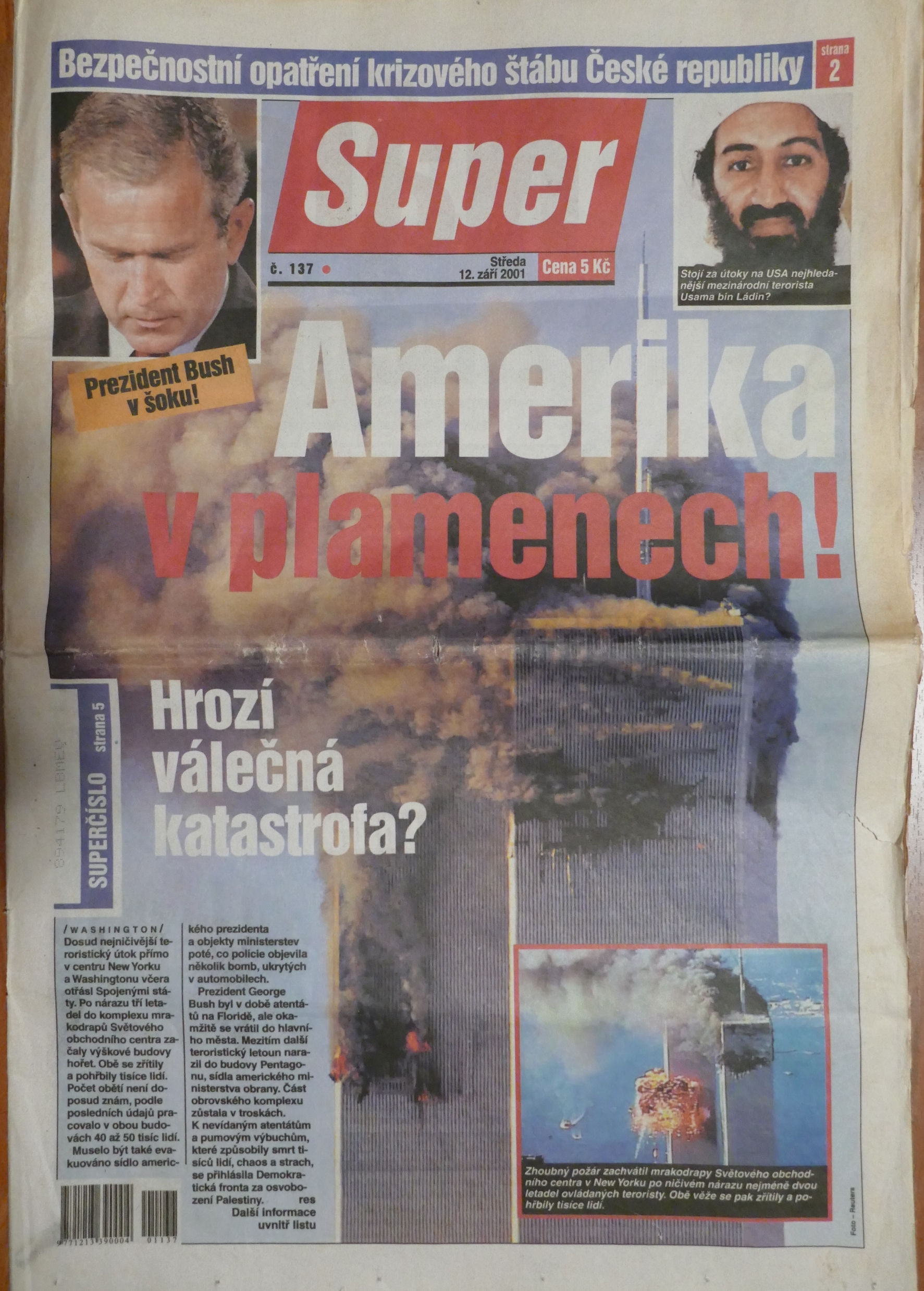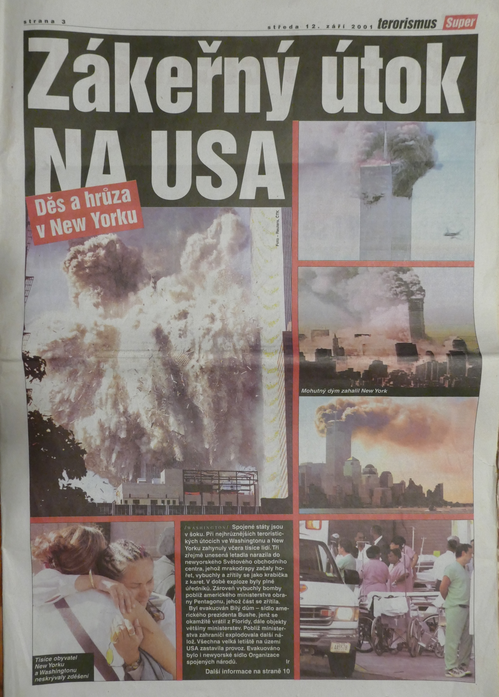 | dvoustránkový článek k 15.výročí teroristických útoků | dvoustránkový článek o místě, kde stála Dvojčata WTC |
