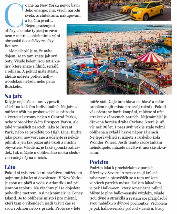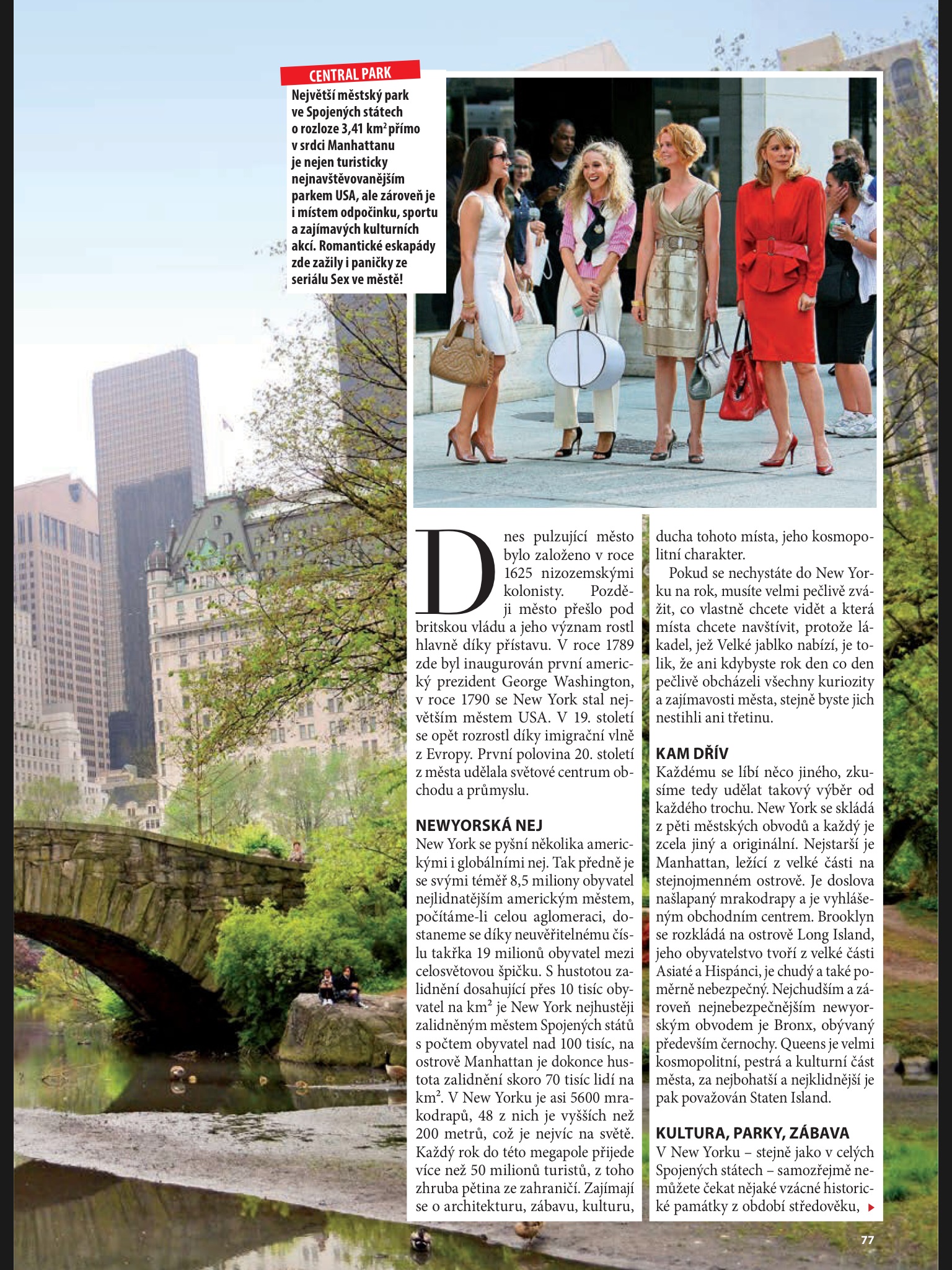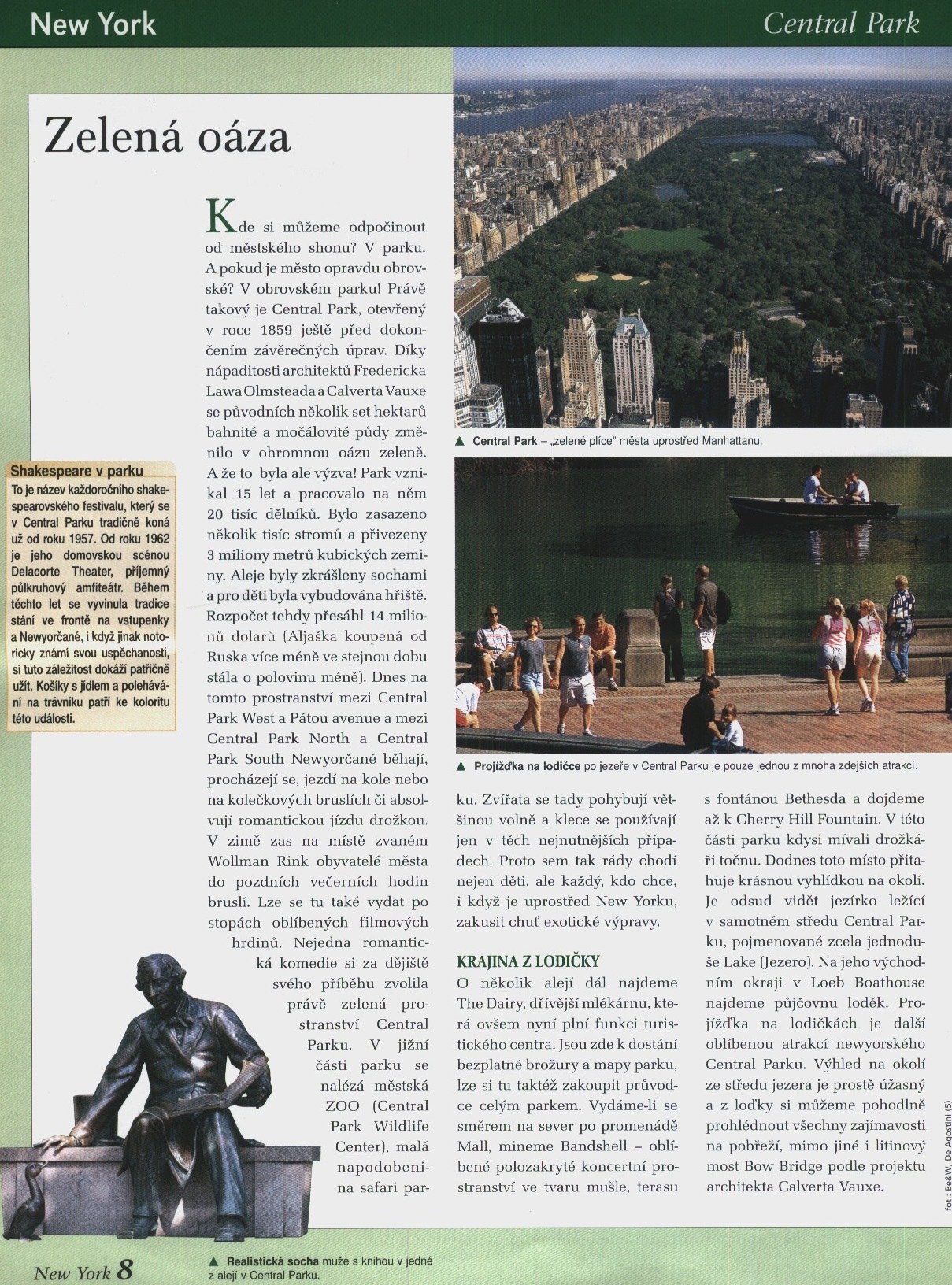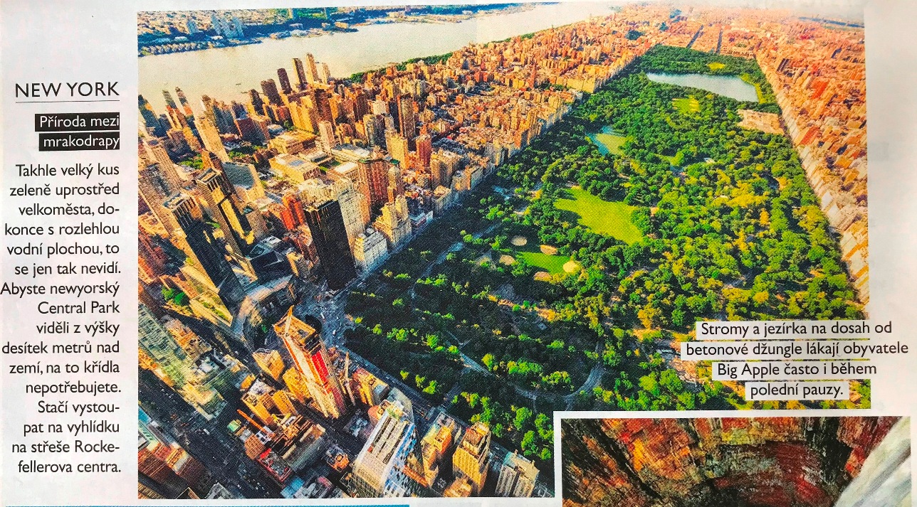| výstřižek ze stránky časopisu s krátkým popiskem o Central Parku |