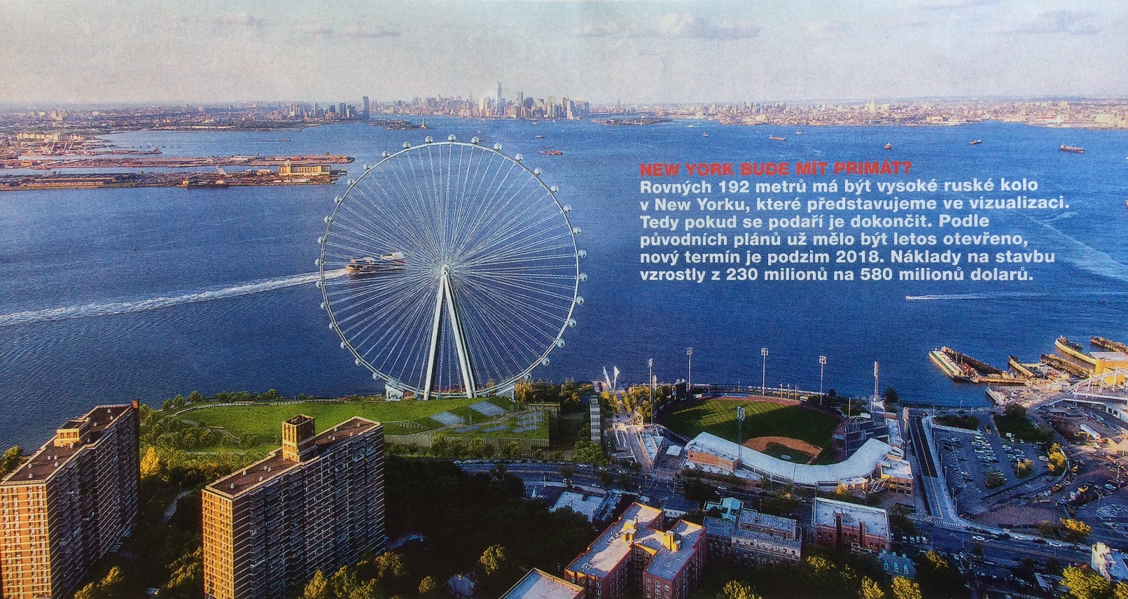 | výstřižek o projektu Ruského kola v NY | dvoustránkový snímek a krátký popisek |