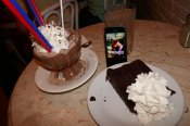 - s mojí ne zrovna vynikající angličtinou jsem si dokázal i objednat z jídelního lístku, ve kterém byly i obrázky :-) panu čísníkovi jsem řekl, že si přeji to, co měli Kate a John ve filmu Serendipity, ten hned věděl o čem mluvím a řekl mi, že to je dobrá volba a ukázal mi to v menu, ještě jsem si vybral podle názvu čokoládový dortík