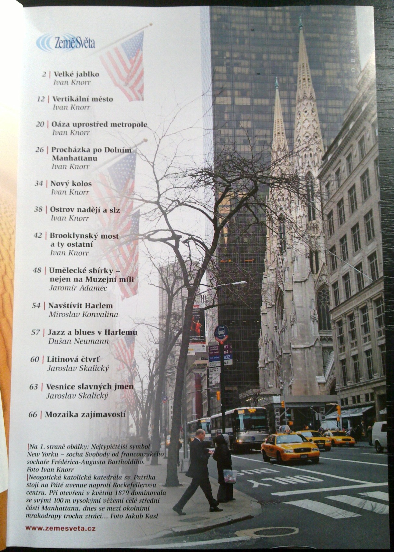 POPIS: Zrodilo se jako Nový Amsterdam, ale o necelé čtyři desetiletí později bylo přejmenováno na Nový York. Jak rostlo a mělo se čile k světu, dostávalo mnoho dalších přízvisek a přezdívek – Hlavní město světa, Město, které nikdy nespí, Empire City, Babylon na řece Hudson nebo Tavicí kotlík… | Články: Velké jablko, Vertikální město, Oáza uprostřed metropole, Procházka po Dolním Manhattanu, Nový kolos, Ostrov nadějí a slz, Brooklynský most a ty ostatní, Umělecké sbírky – nejen na Muzejní míli, Navštívit Harlem, Jazz a blues v Harlemu, Litinová čtvrť, Vesnice slavných jmen, Mozaika zajímavostí