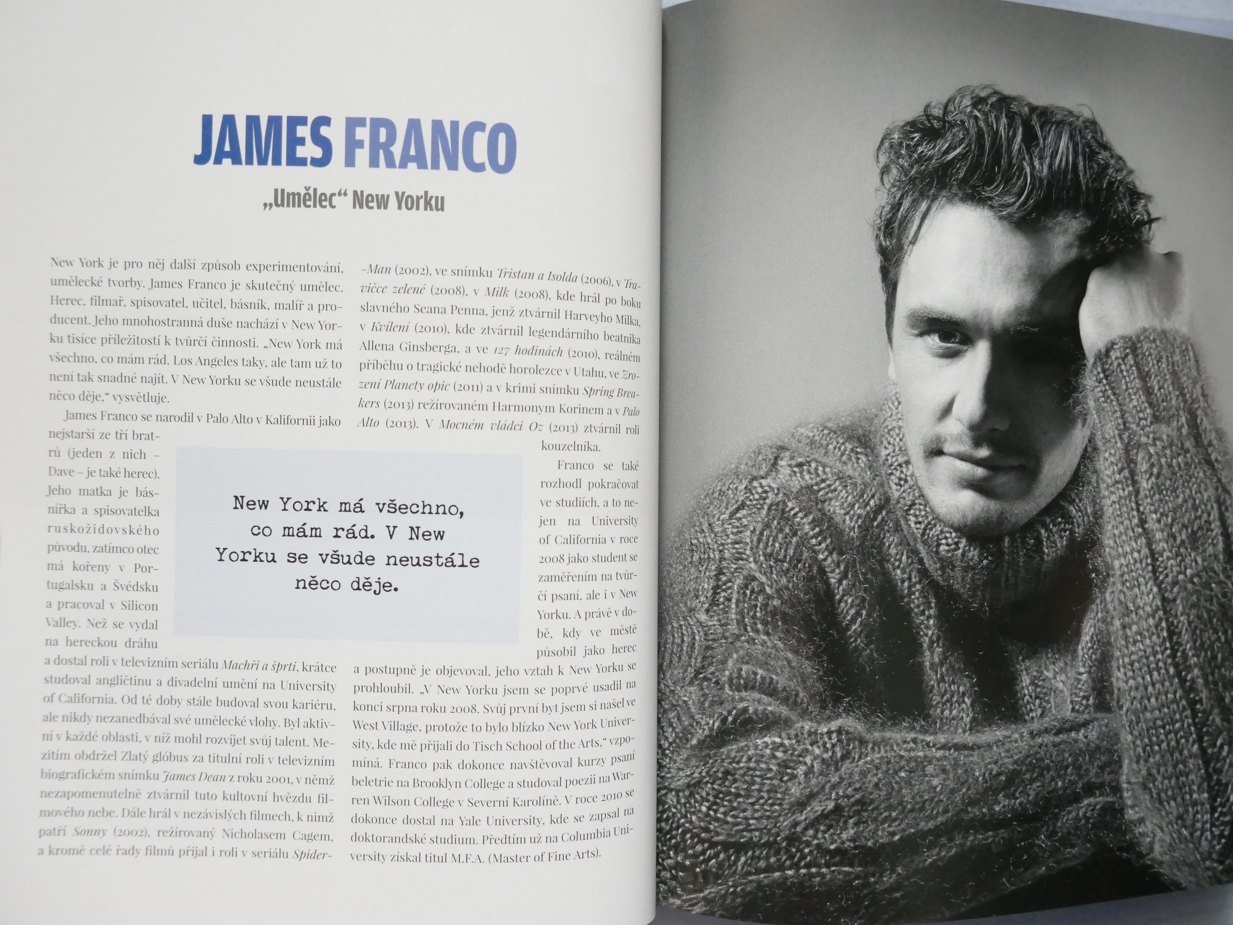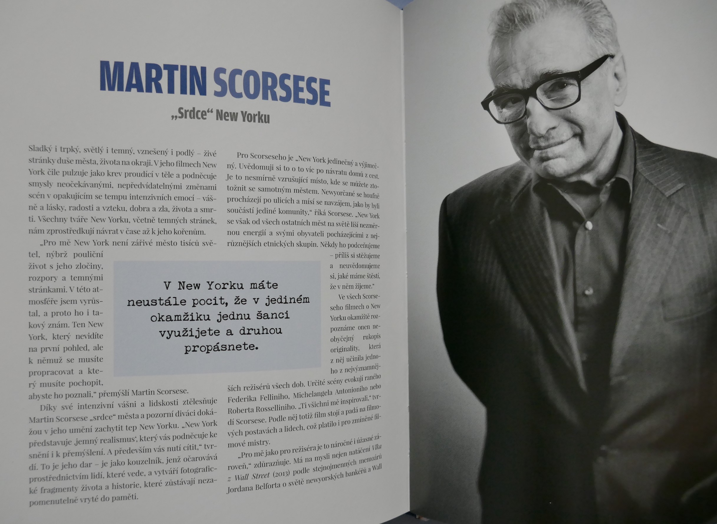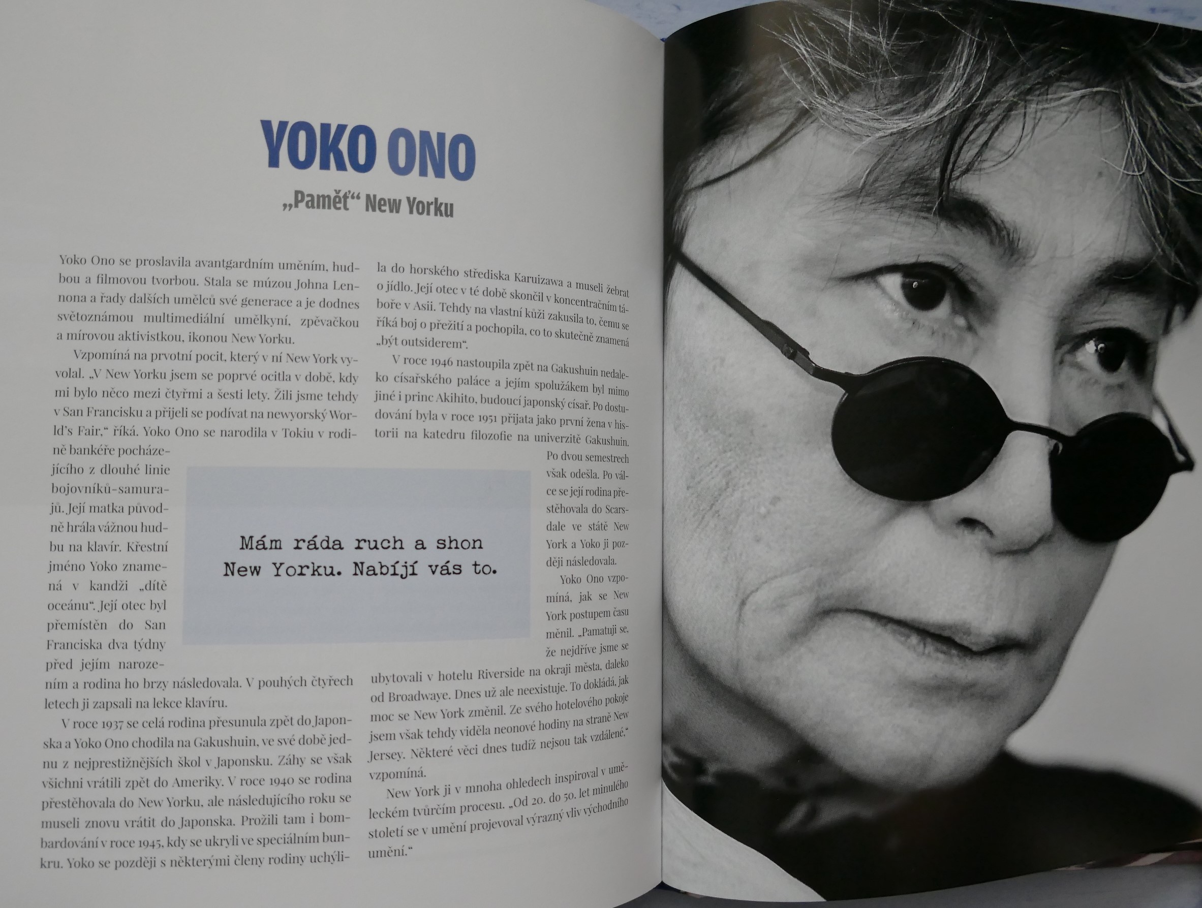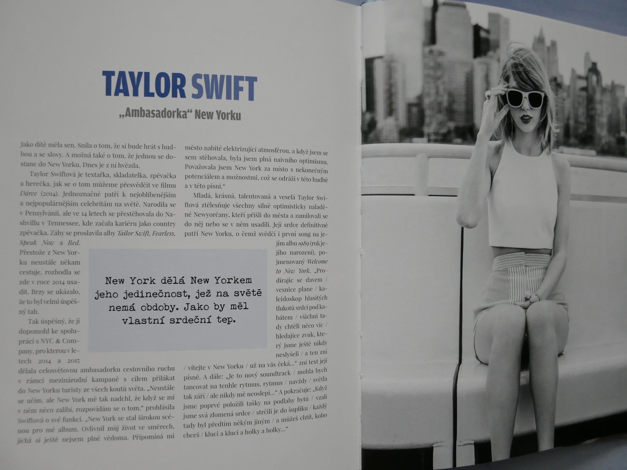 POPIS: Město očima známých osobností. | New York je studnicí nesčetných příběhů. Kdo ho chce poznat, musí v něm číst jako v knize. Listovat jím stránku po stránce, prohlížet si obrazy ulic a učit se mu naslouchat. New York totiž není jen "městem tisíců světel", ale i tisíců hlasů. A když se tyto detaily, každodenní okamžiky pečlivě a trpělivě poskládají jako puzzle, vznikne obraz New Yorku. Pak jako mávnutím kouzelného proutku dostane New York svoji podobu. Tato kniha je vyprávěním osobností, jež daly městu duši, spoluutvářely jeho historii a které šíří jeho obraz po celém světě v oblasti umění, literatury, architektury, kinematografie, hudby a kulinářství - Roberta De Niro i Woodyho Allena, Jaye McInerneyho, Martina Scorseseho i Daniela Libeskinda, Maria Bataliho i Candace Bushnellové, Spikea Leeho a dalších.