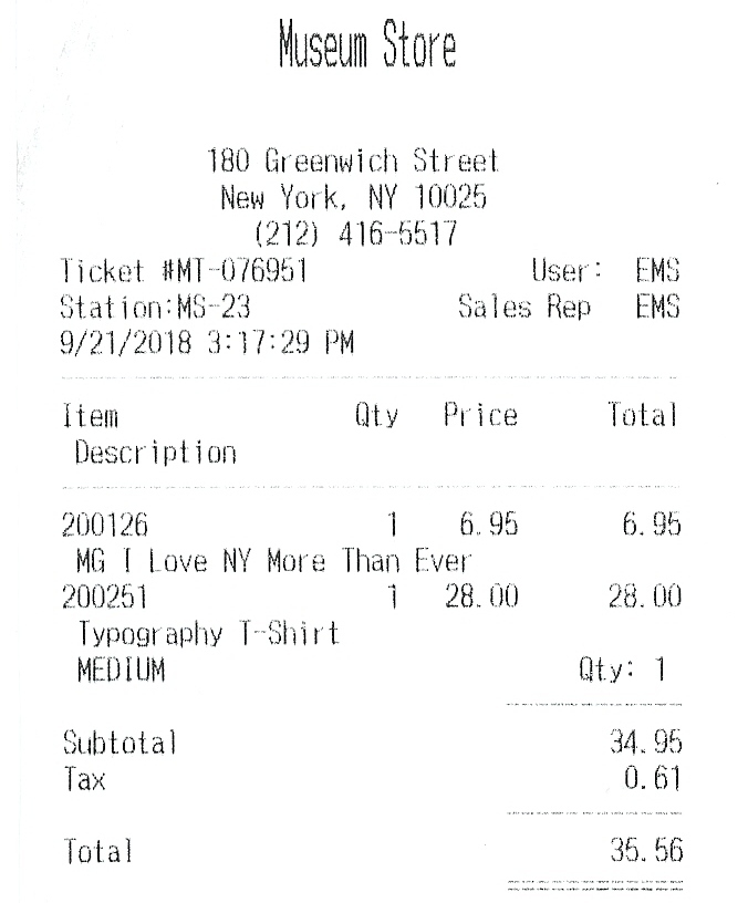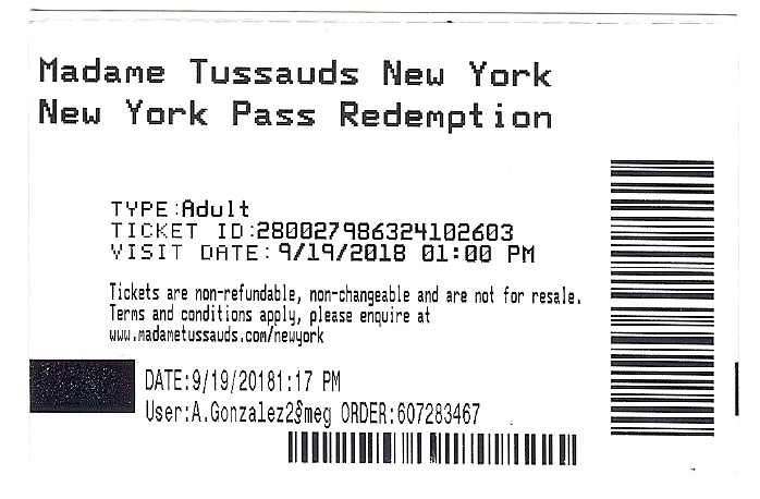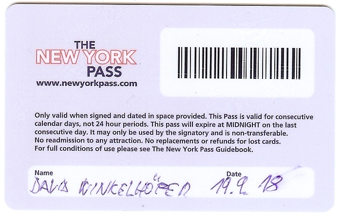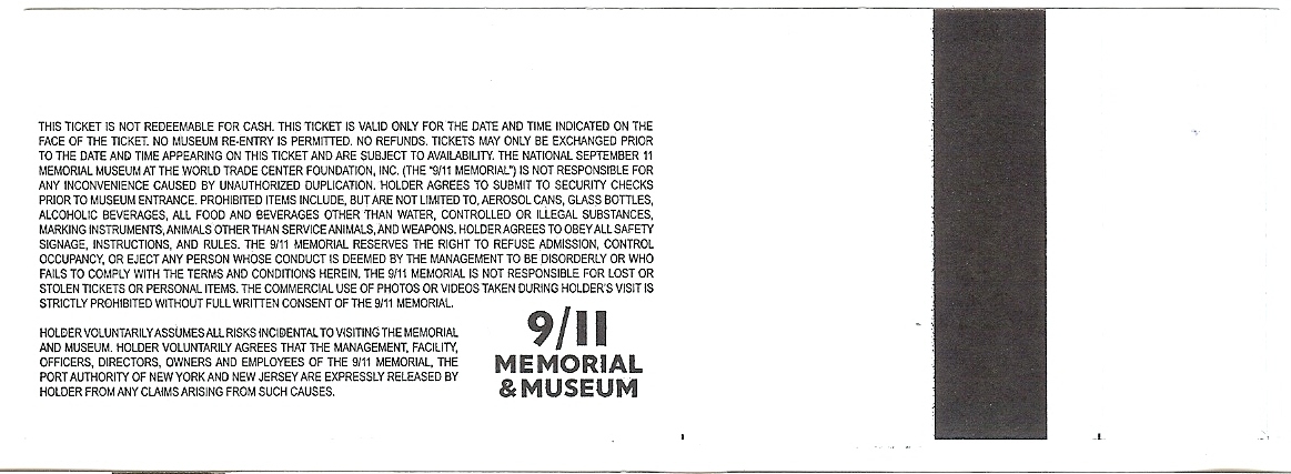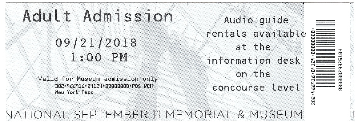 2018 - 9/11 NATIONAL SEPTEMBER 11 MEMORIAL & MUSEUM vstupenka do muzea (strana A + B)