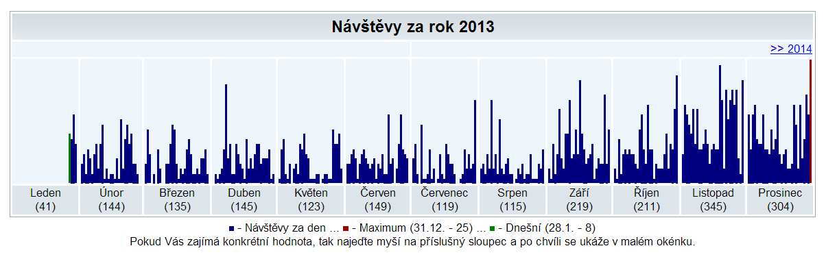 - Rekordní dny: 31.12.2013 - 25 návštěv