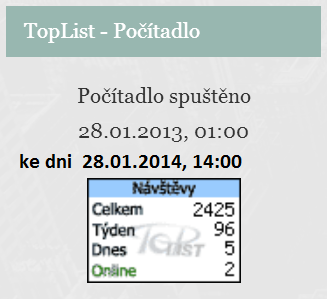 Počítadlo spuštěno - 28.01.2013 v 1:00 hodin (po půlnoci)