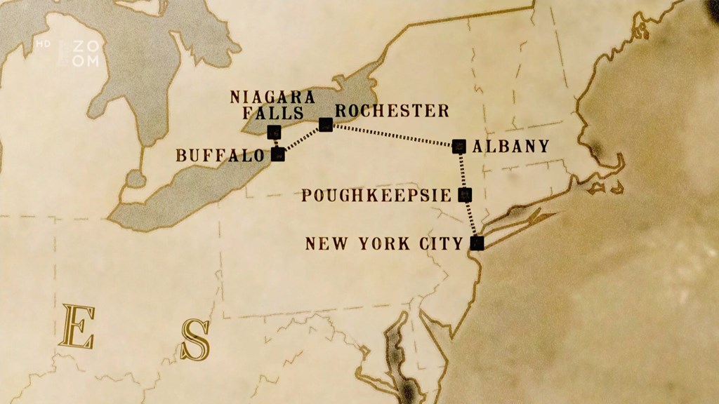 Michael Portillo putuje po železnici přes celé Spojené státy. Řídí se při tom všeobecným průvodcem z roku 1879 – vydaným v klíčovém momentě amerických dějin, kdy se z „Nového světa“ stal nejbohatší stát všech dob. Michael se vrací do doby rozkvětu železnice, který nastal po brutální občanské válce (prvním vojenském střetu, do něhož zasáhla železnice), a velkého rozmachu průmyslové revoluce. Tehdy se z Ameriky zrodily Spojené státy, jaké známe dnes. A právě s železnicí zůstává rozvoj země neodmyslitelně spjatý. Michaelova cesta vede po dvou železničních trasách: z města New Yorku podél řeky Hudson směrem k Velkým jezerům; a z Filadelfie až do první stálé anglické usedlosti v Americe, města Jamestown ve Virginii.