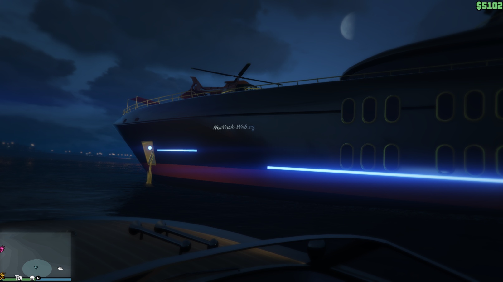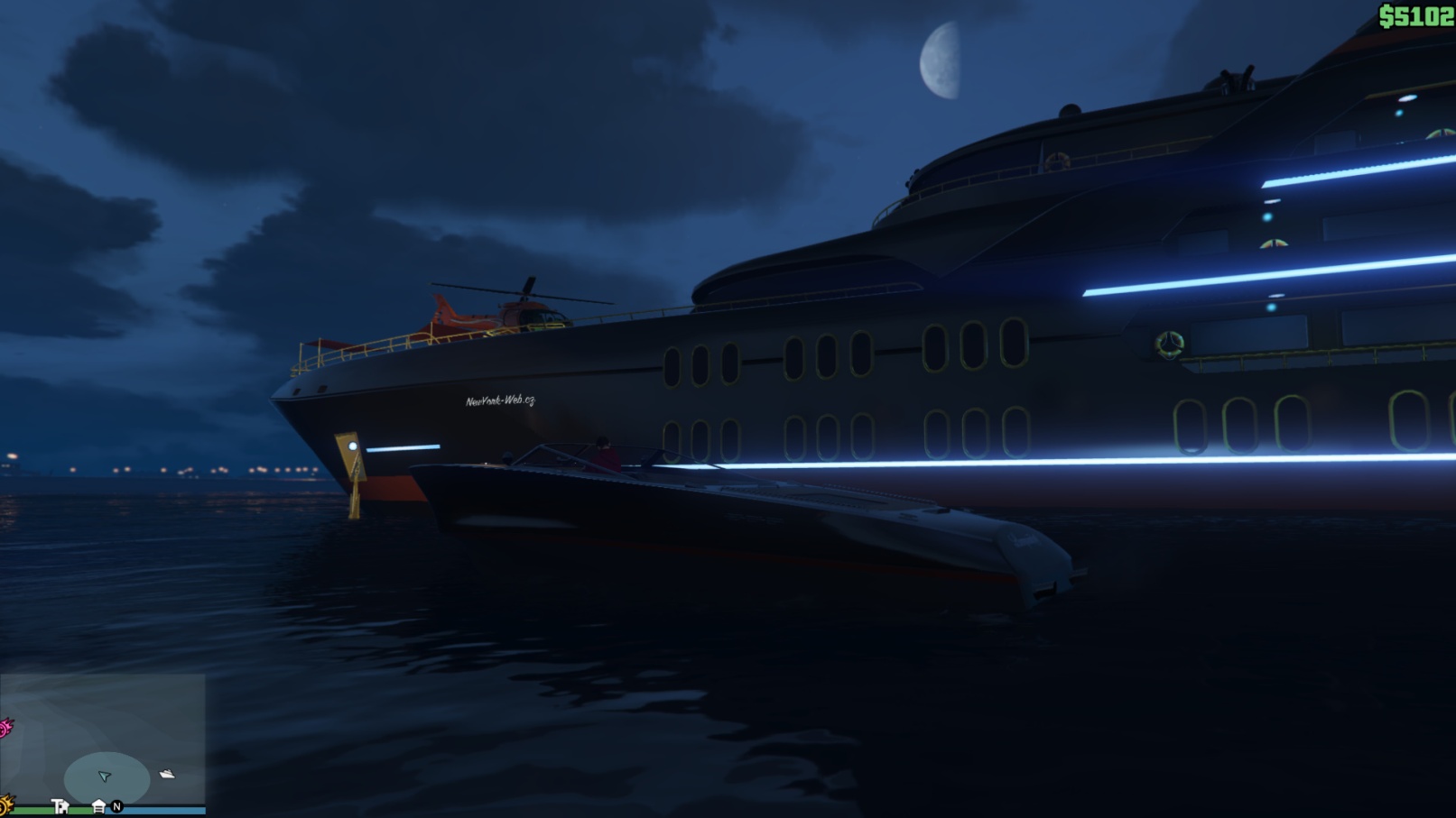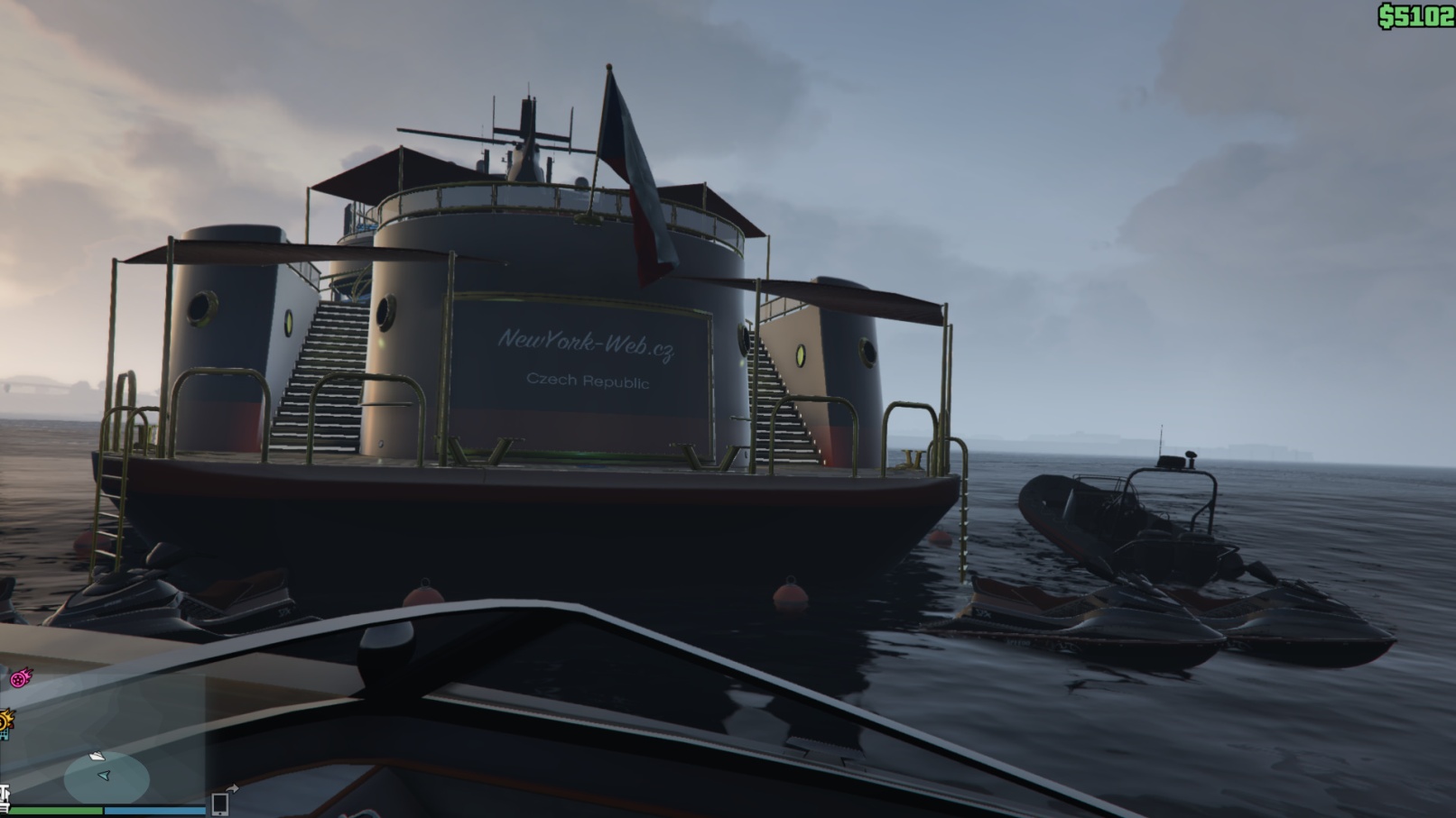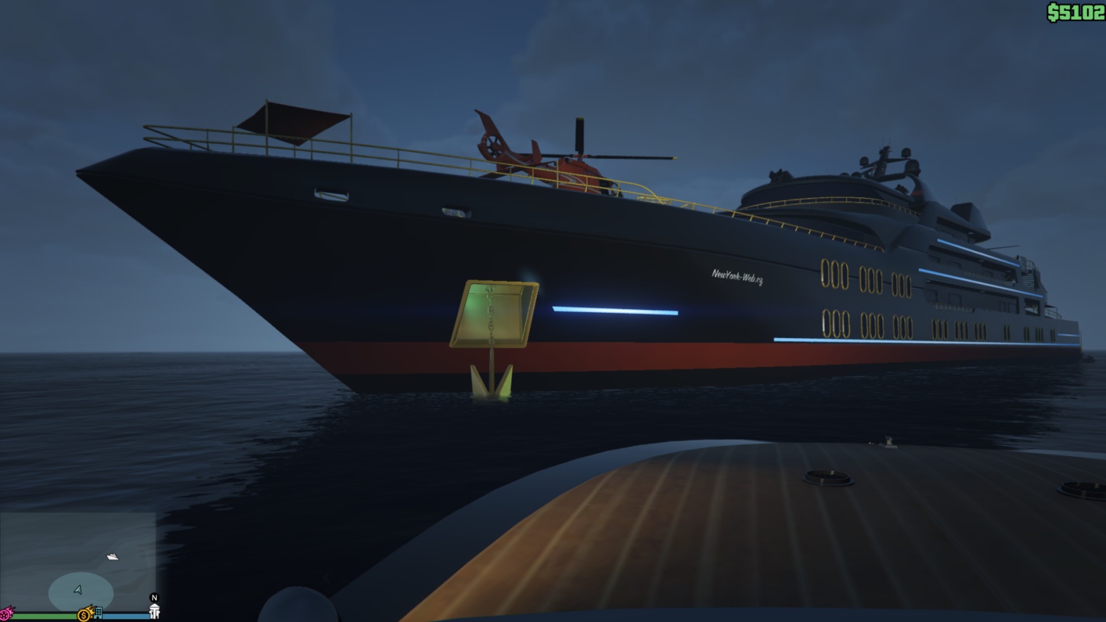 Málem bych zapomněl, mám koupenou i jachtu a ta nese také výše zmíněný název, na zádi a na bocích, to vidí každý hráč, který propluje kolem, proletí nad lodí nebo navštíví mou palubu lodě pro plnění mise "obrana horní paluby jachty". Musí být na stejném serveru tzv. Session.