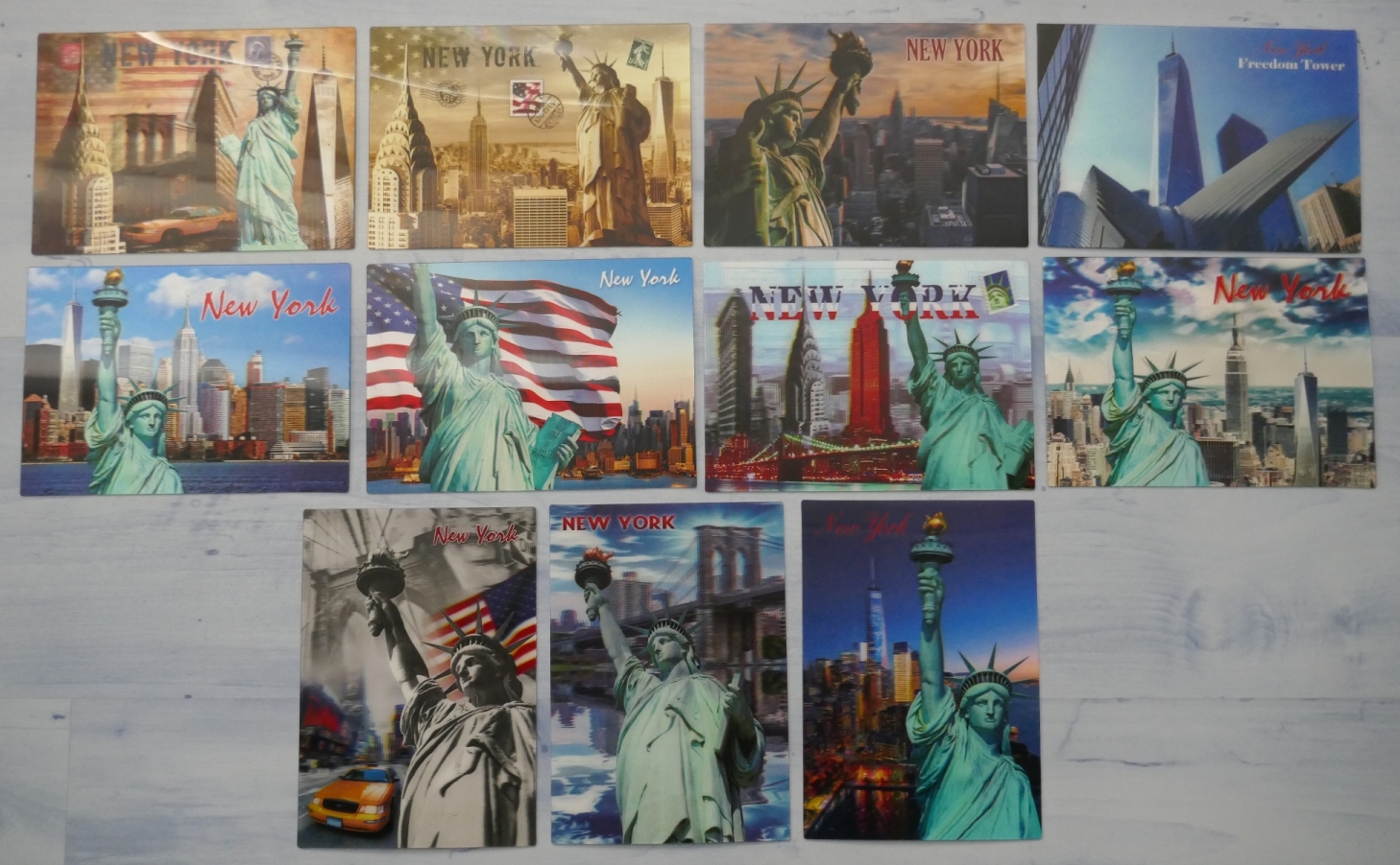 Nákup pohlednic jsem měl ve svým plánu už před cestou do NY. Fanoušci určitě vědí, že jsem sběratelem pohledů z NY již nějakou dobu a dříve jsem se více věnoval naší fotogalerii mé sbírky, do které jsem většinu pohlednic nakoupil v aukcích na Aukro.cz (klikni a uvidíš, stále někdo nabízí) a některé jsem dostal od fanoušků. Tyto pohlednice nakoupené v New Yorku mají samostatné fotoalbum, do kterého vkládám jen novodobé pohledy, ty z Aukra jsou spíše historické. Všechny si můžete, jak už někteří ví, prohlédnout na našich setkáních, na která je vždy přivážím :-) Velký výběr pohlednic v New Yorku seženete v Gift a Souvenir Store / Shop a často se můžete setkat s akcí, např. 10 ks za 3 USD apod., už si nepamatuji přesně počet a cenu, ale určitě se takové nabídky vyplatí vyhledávat, hlavně pokud chcete obohatit svojí sbírku :-) Foto pohlednic vpravo jsou 3D pohlednice.