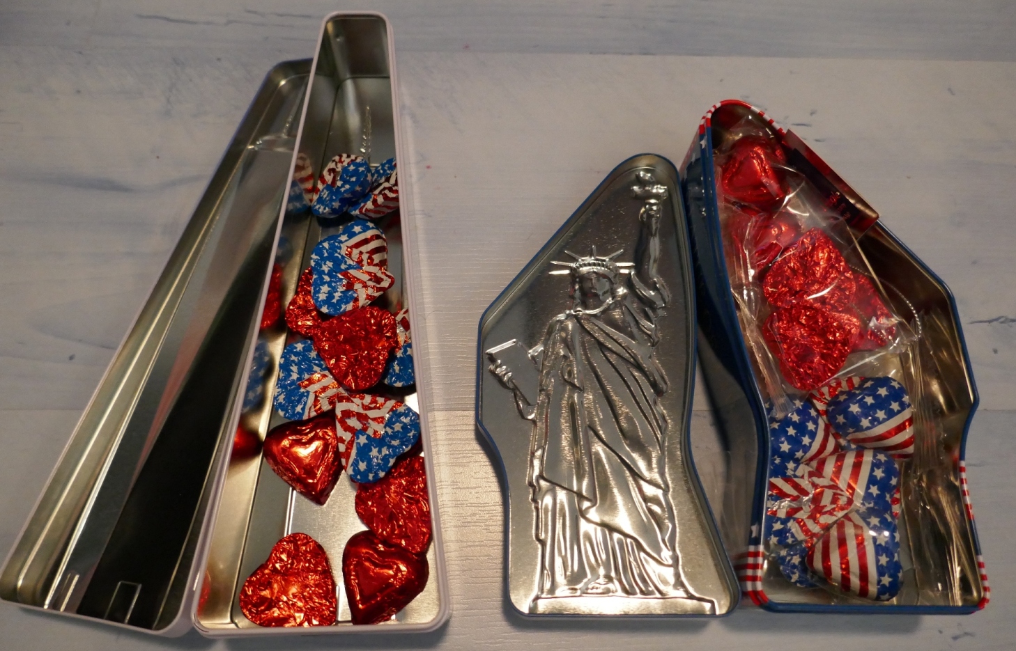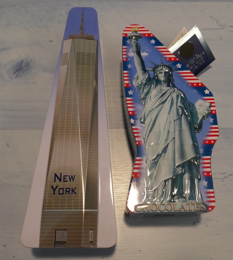 Tyto plechové designové dózy s čokoládou koupíte v shopu WorldDutyFree na letišti JFK, a navíc byla akce při koupi dvou, ale už nevím kolik byla sleva. Čokoláda nic moc, ale dózy stojí za to, jako suvenýr.